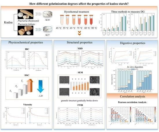 Effects of Different Degrees of Gelatinization on Structural, Physicochemical and Digestive Properties of Kudzu Starch