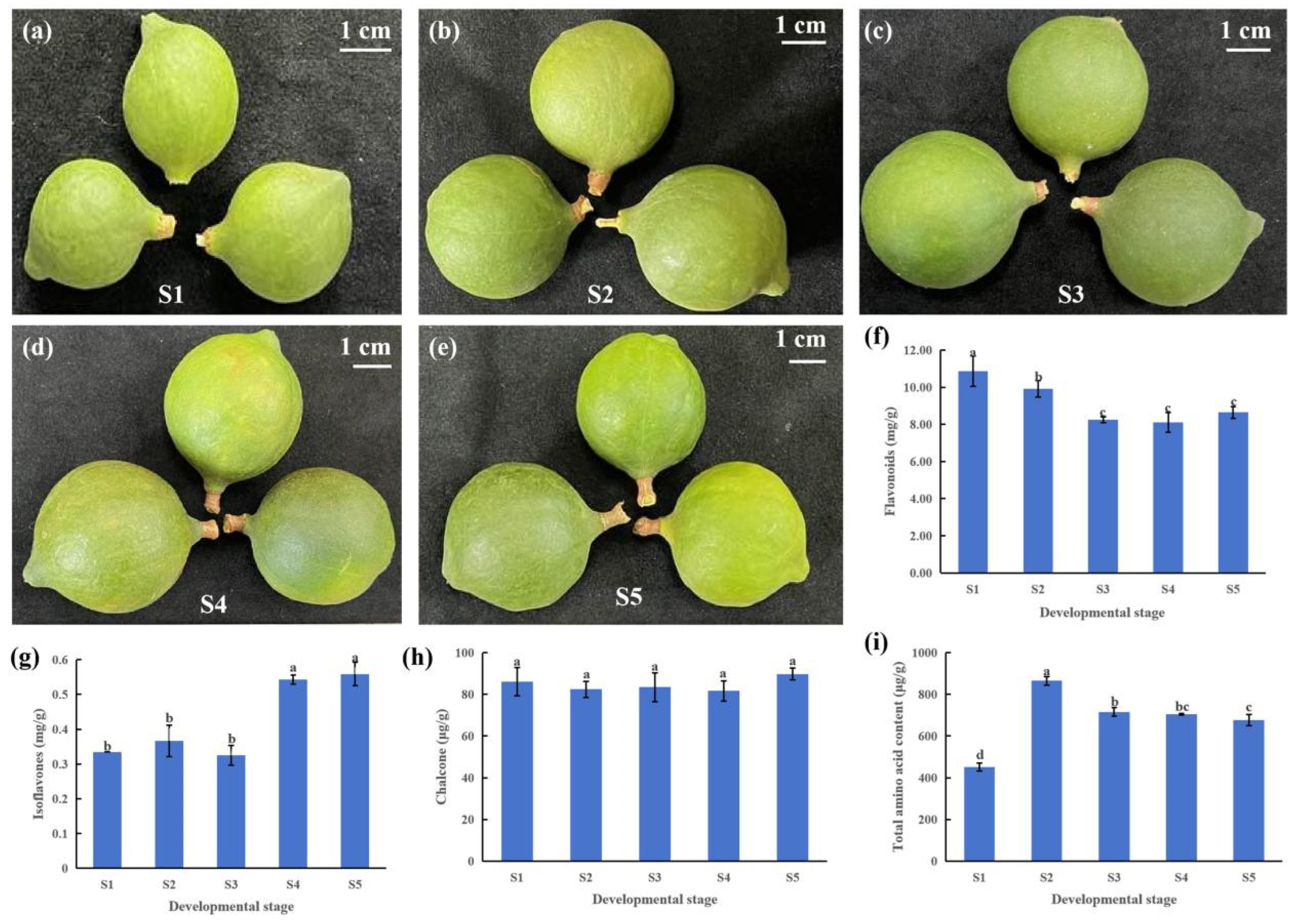 3.1. Changes in Flavonoid Content in the Pericarp of Macadamia