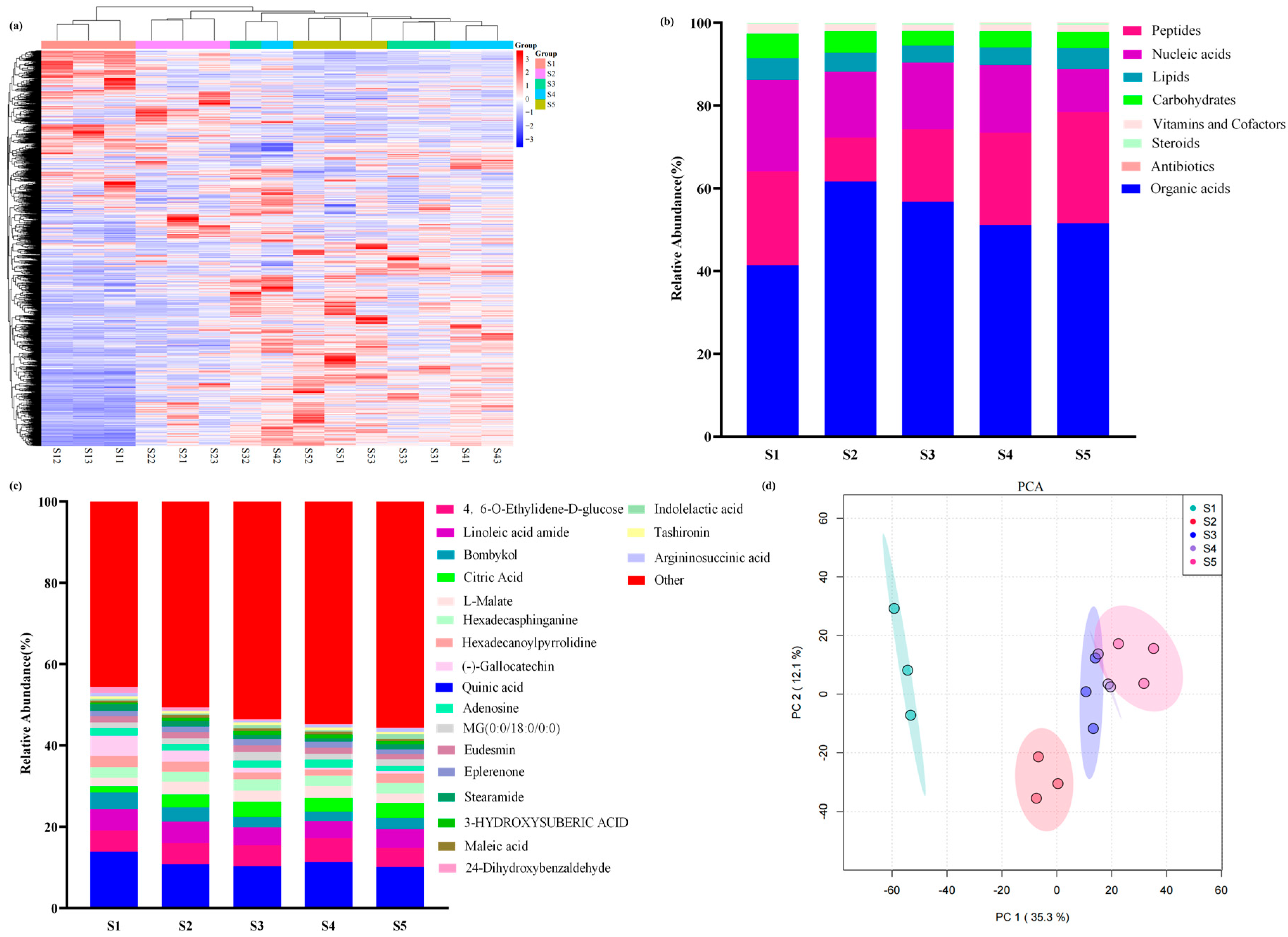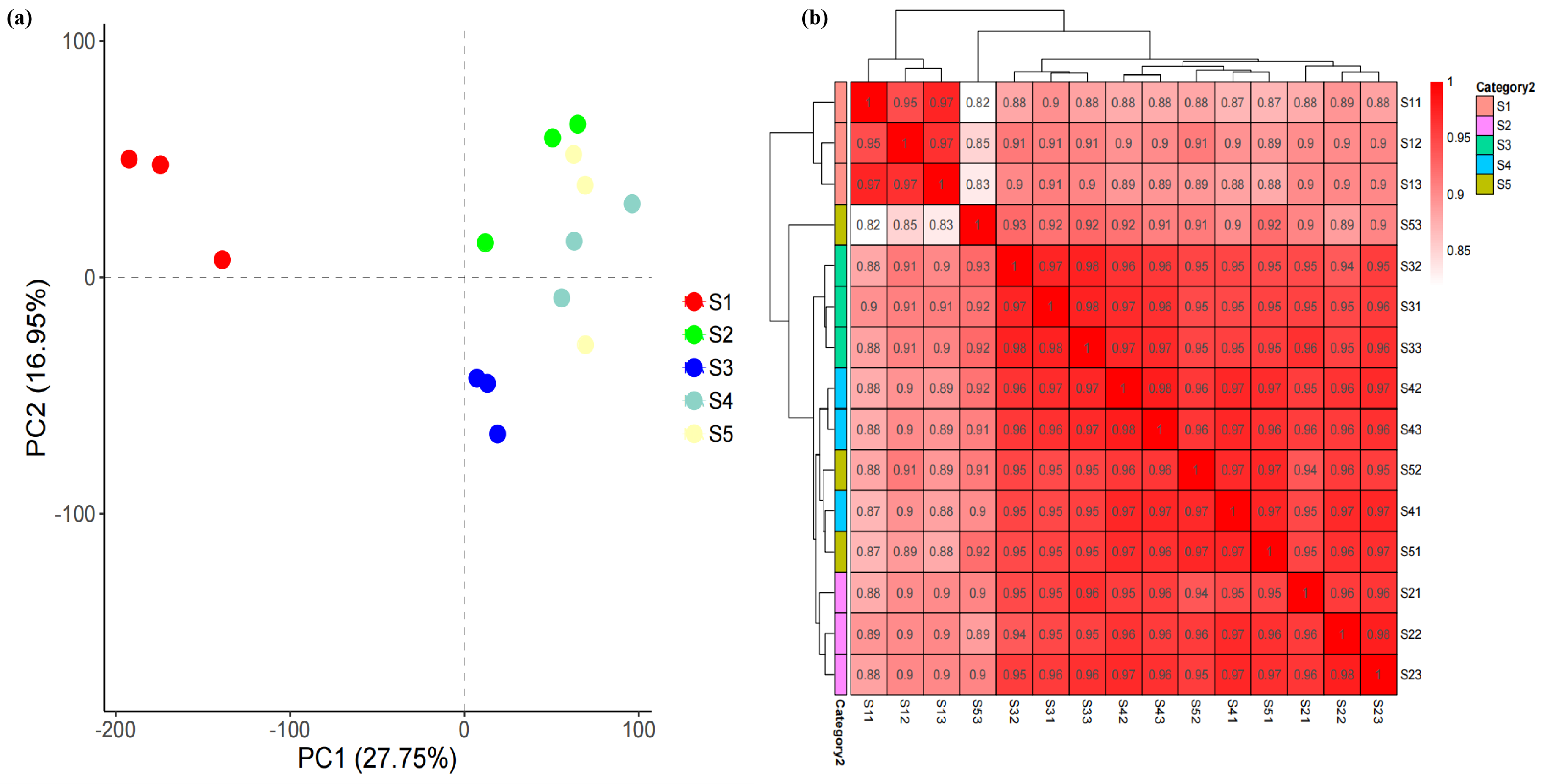 3.2. Metabolomic Analysis of Pericarp at Different Developmental Stages