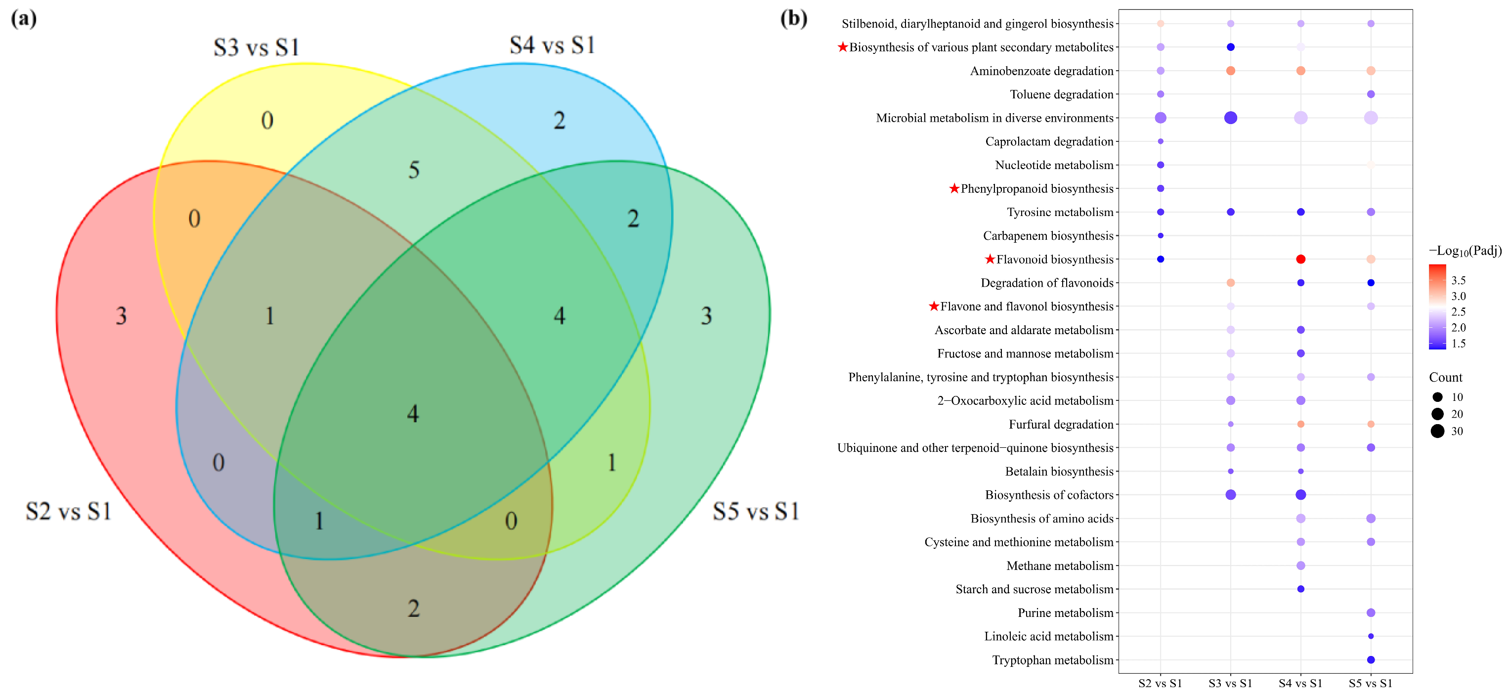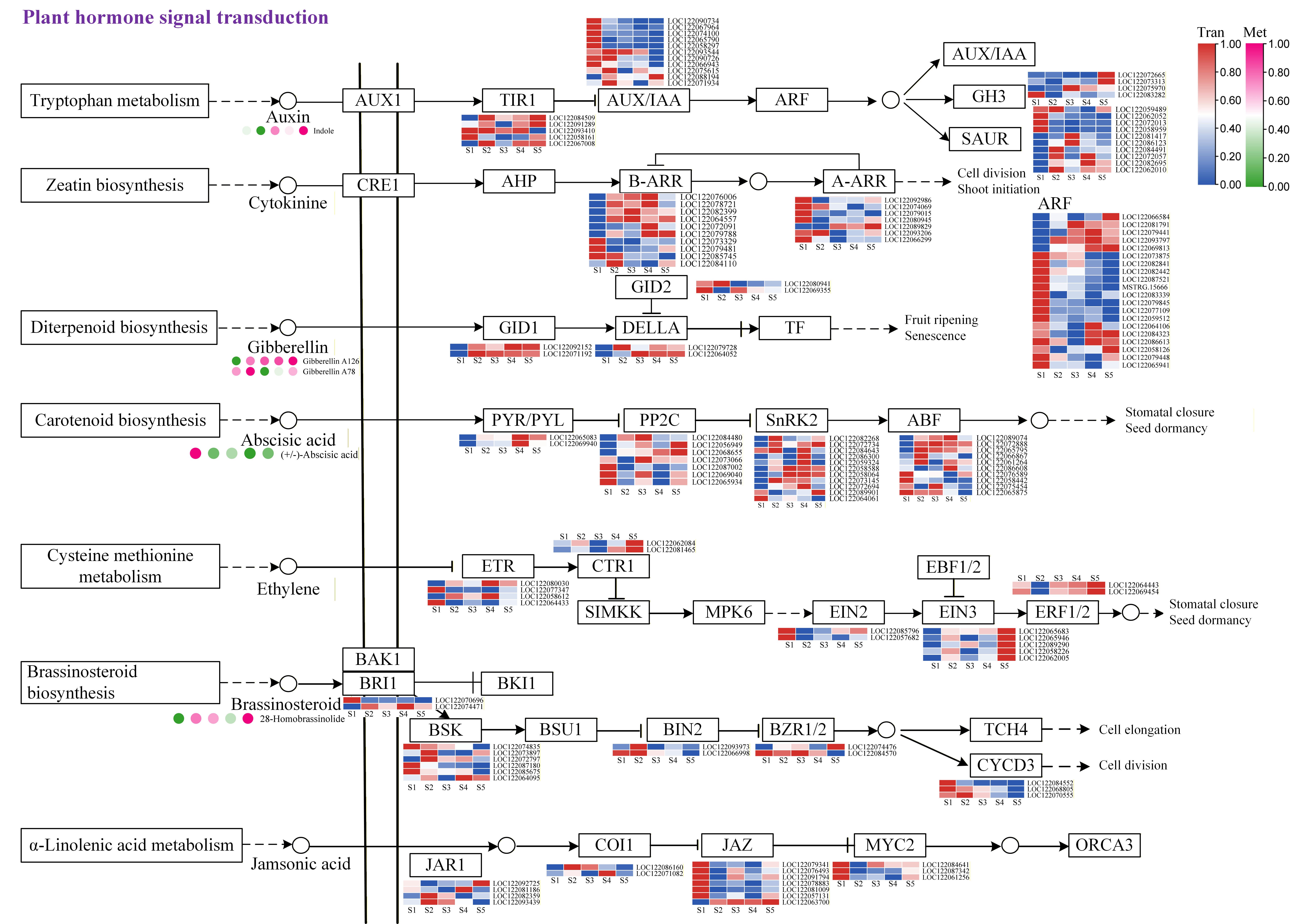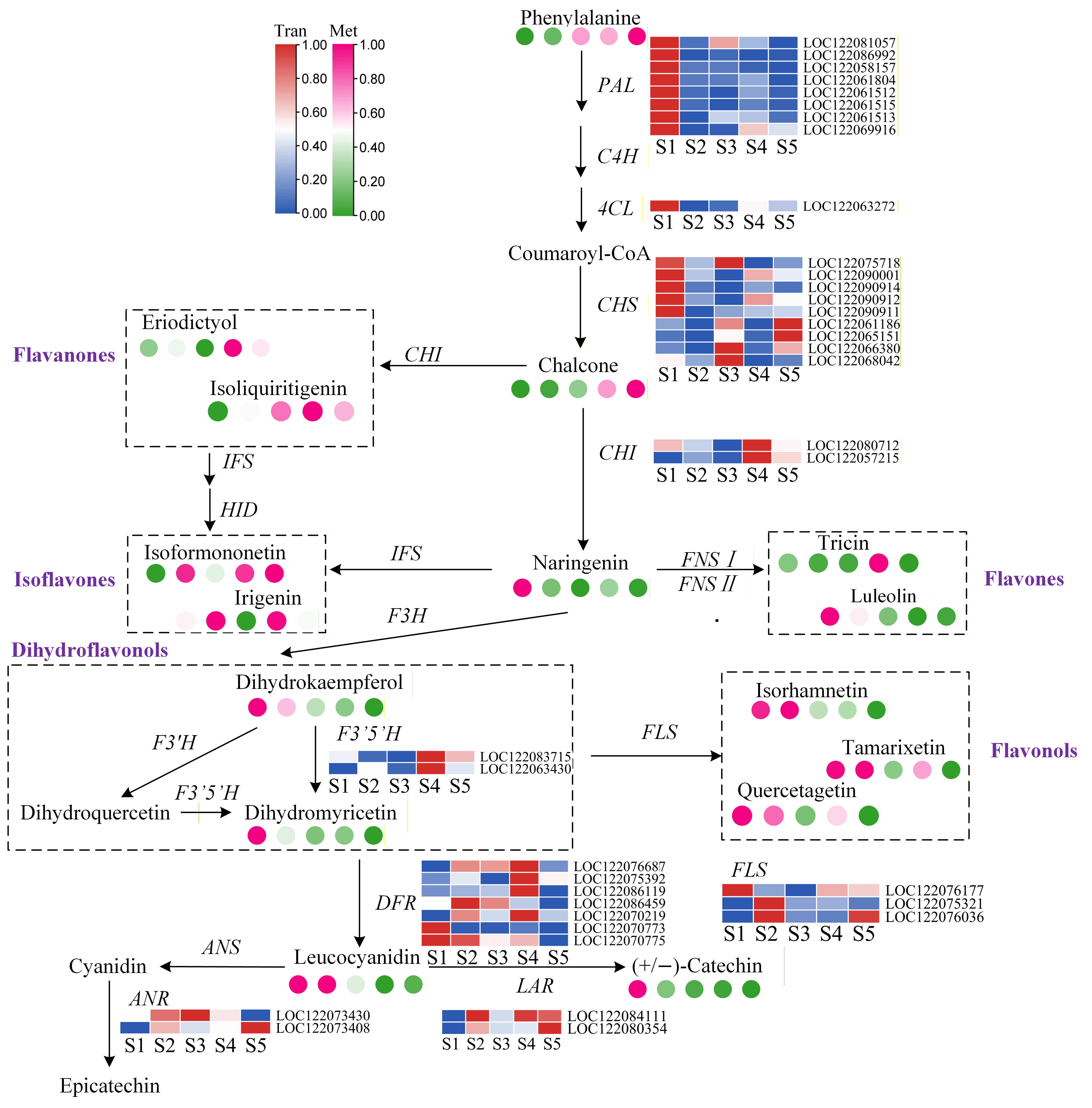 3.6. Correlation of Flavonoid Biosynthesis and Plant Hormone Signal Transduction Pathway