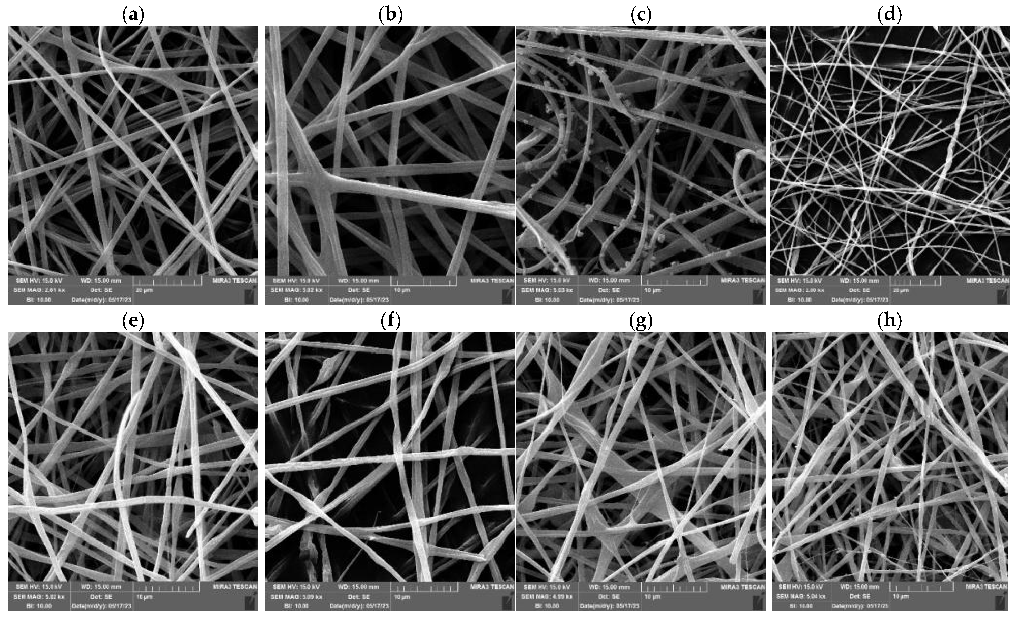 2.7. Characterization of Electrospun Nanofibers