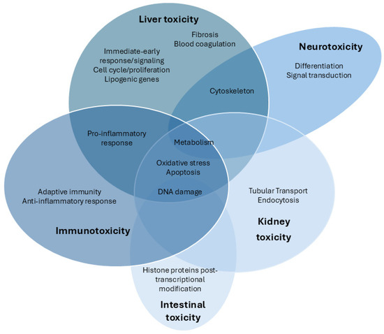 Venn diagram of the transcriptomic pathways analyzed after exposure to CYN in different target organs and systems.