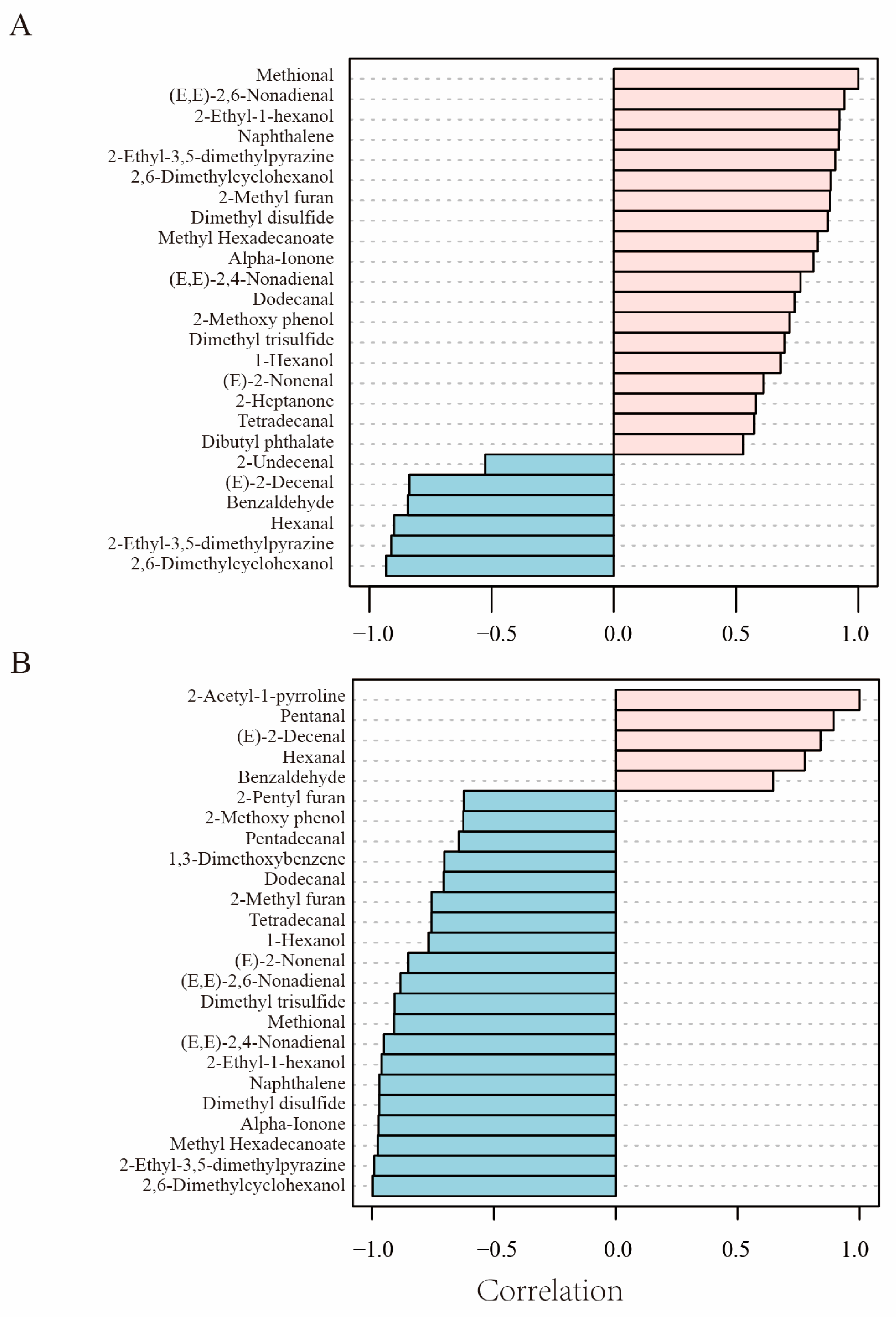 3.2.2. Results of the Screen of Key Compounds Using Orthogonal Partial Least Squares and Correlation Methods