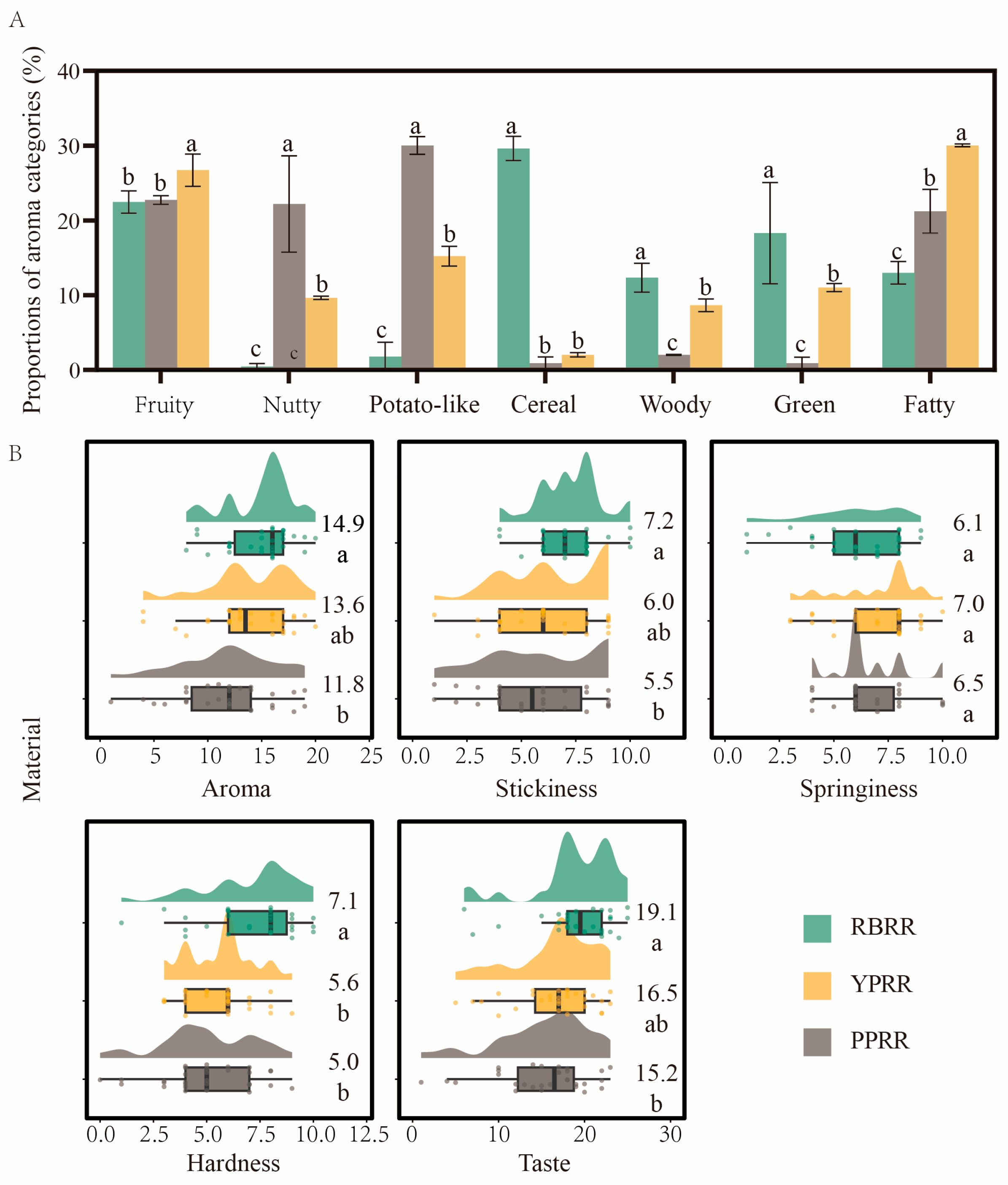 3.2. Flavor Characteristics of Potato-Based Rice Produced from Different Potatoes