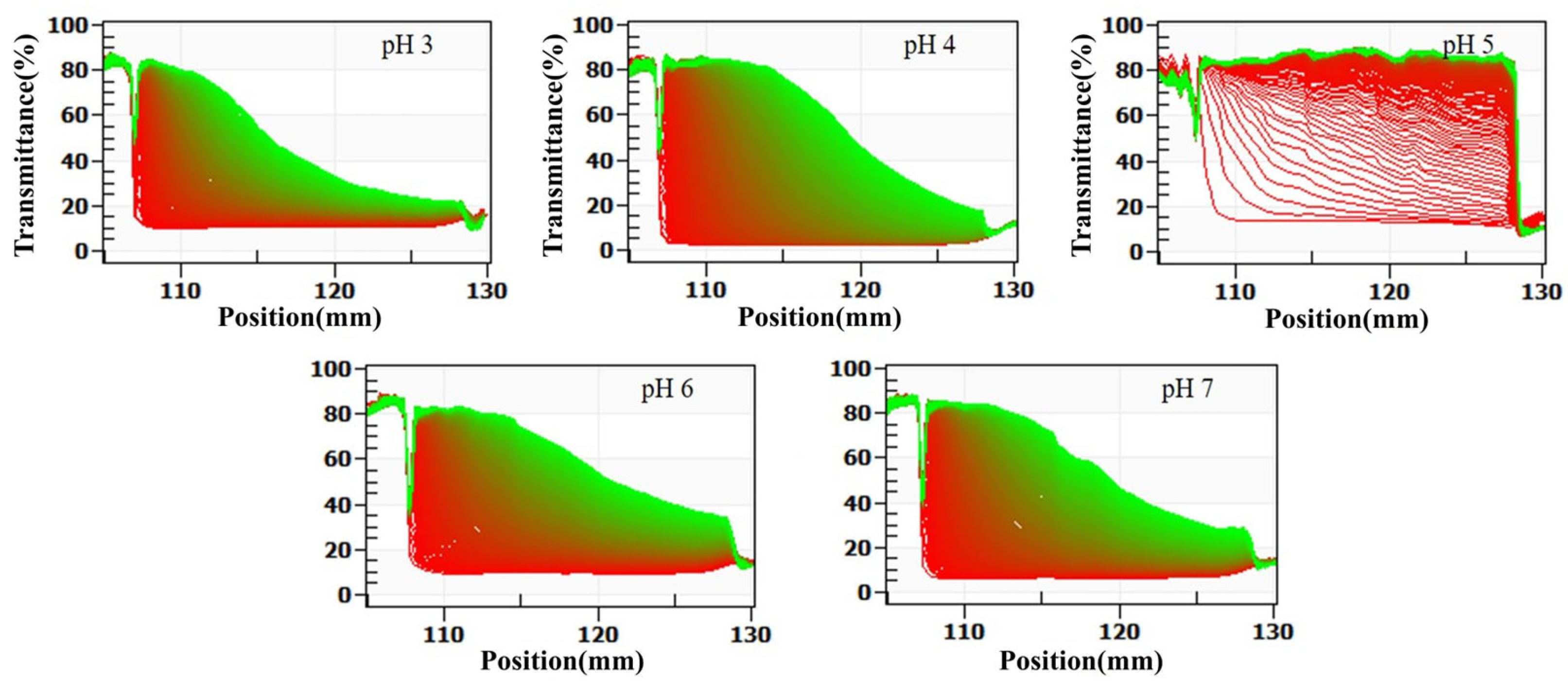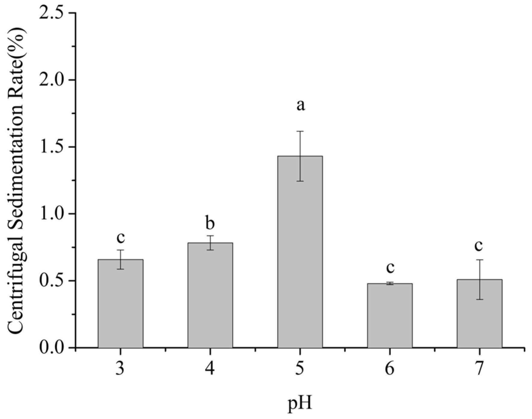 3.1. Effect of pH on the Centrifugal Sedimentation Rate of Formulated Dairy Beverages