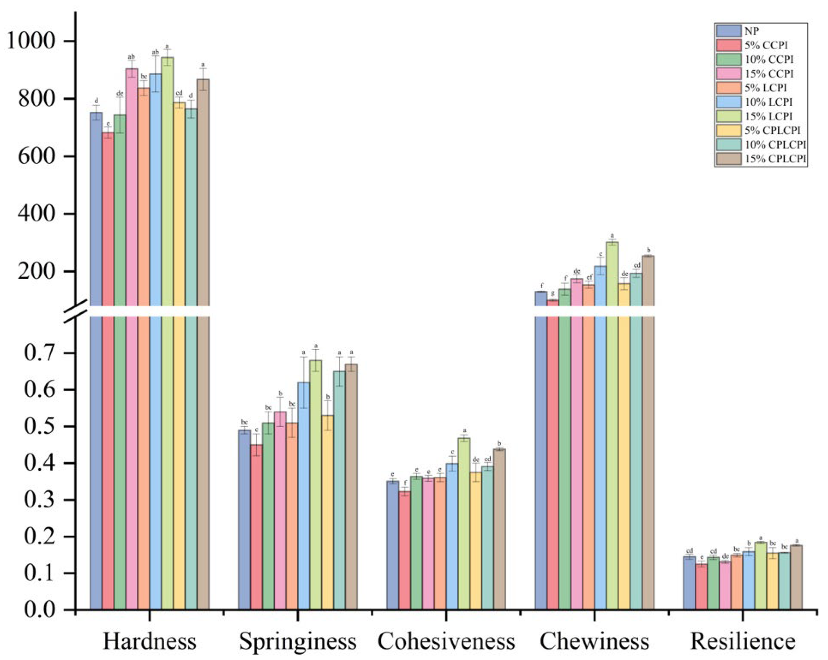 | 10% CPLCPI | 79.27 ± 0.96 g | 5.98 ± 0.41 d | 36.83 ± 0.43 fg |