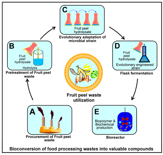 Much of the food processing waste is rich in cellulose, hemicellulose, and lignin, simply known as cellulosic biomass. This waste has risen considerably due to multiple factors, including urbanization, high population growth, and increased demand for agricultural and industrial products. The most notable food processing wastes are pectin-rich fruit waste, rice straw, sugarcane bagasse, and cotton stalk, which are known to have numerous applications in food and medical applications. Candida bombicola and Candida tropicalis are known to consume food processing wastes due to their high biomass and functionality. They use waste frying oil and corn cob, respectively, to produce sophorolipid biosurfactants and xylitol [1,2]. The cell wall of food processing residue consists of polysaccharides that can be a carbon source for various microorganisms, and their improper management leads to environmental pollution [3]. This review discusses the urgent need for several bioproducts in our community by determining the significance of enzymatic technology in valorizing agroindustrial wastes. This innovative method not only increases resource utilization but also contributes to sustainable bioprocessing. As a result, there has been an unprecedented global focus on every aspect of cellulase enzymes, including their structure and functional characteristics related to the hydrolysis of cellulose-rich food processing waste.