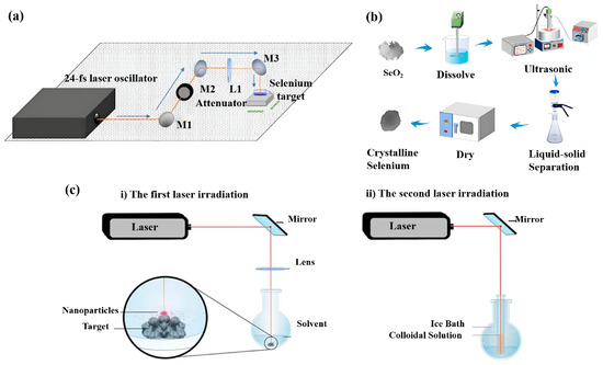 - Haro-Poniatowski, E.; Escobar-Alarcón, L.; Hernández-Pozos, J.L.; Mendoza-Luna, L.G.; Guarin, C.A. Synthesis and characterization of selenium nanoparticles obtained by femtosecond pulsed laser ablation in liquid media. Appl. Phys. A Mater. Sci. Process. 2022, 128, 827. [Google Scholar] [CrossRef]