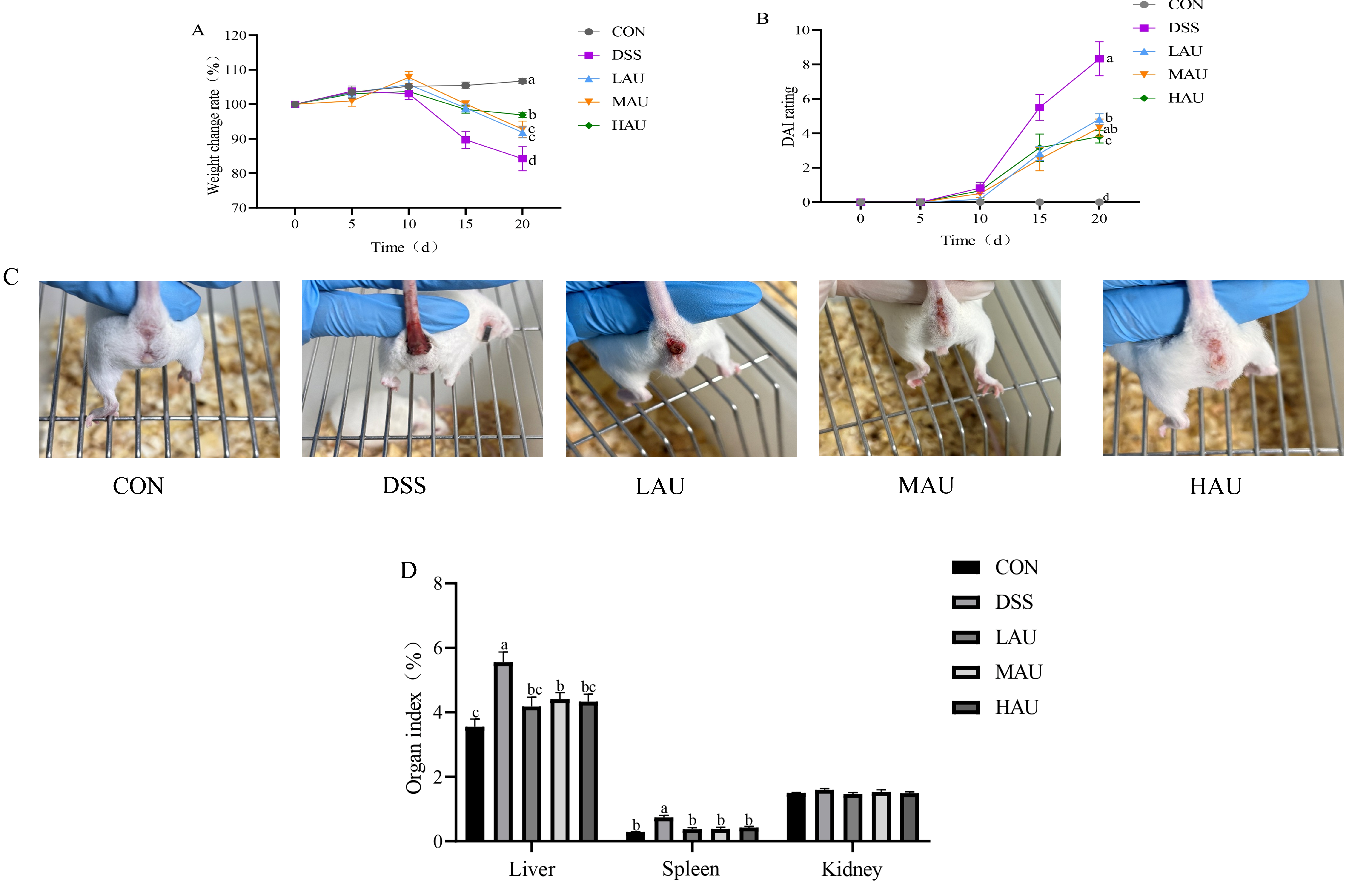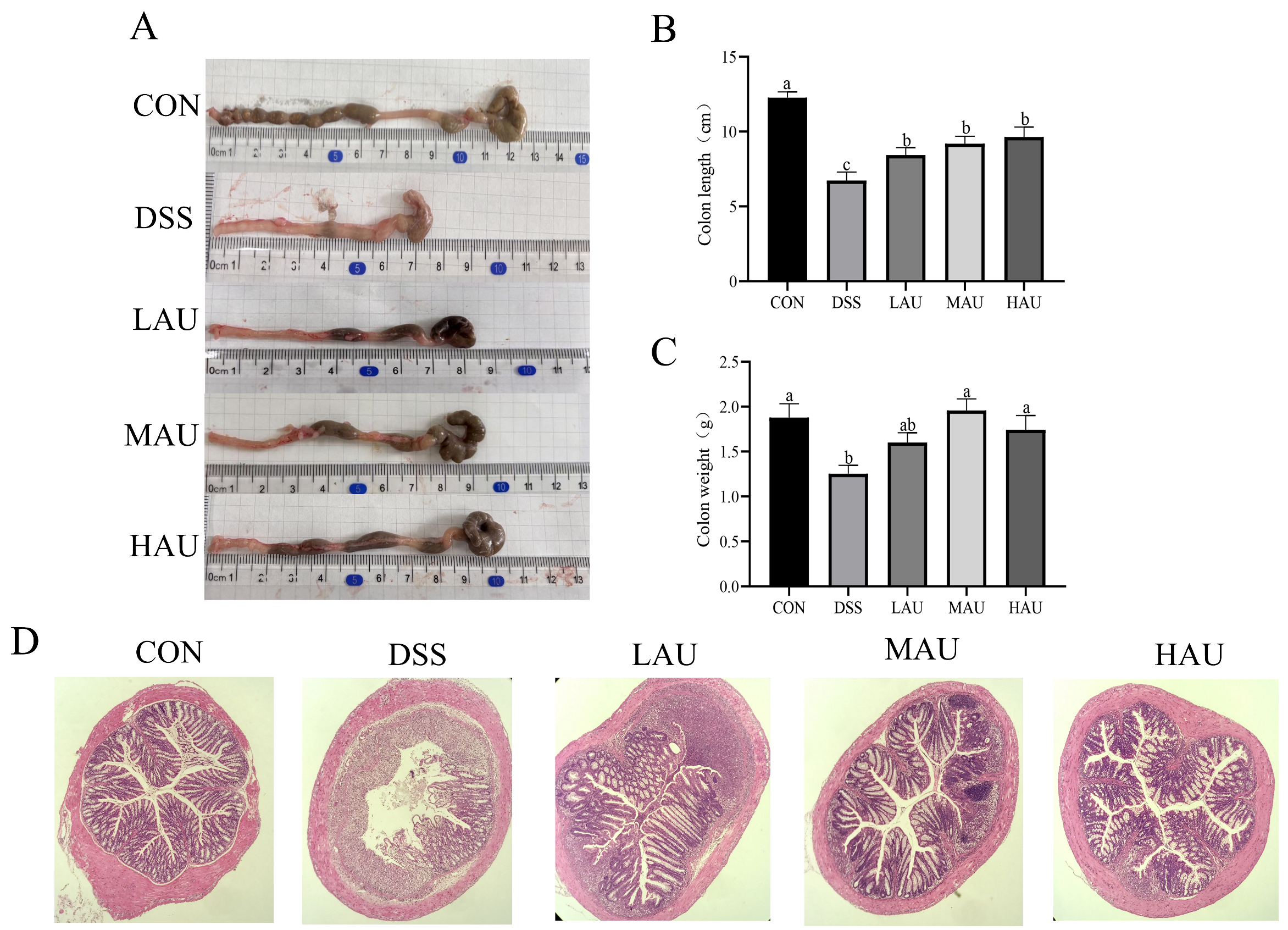 3.2. Effect of AU on Organ Indices in Colitis Mice