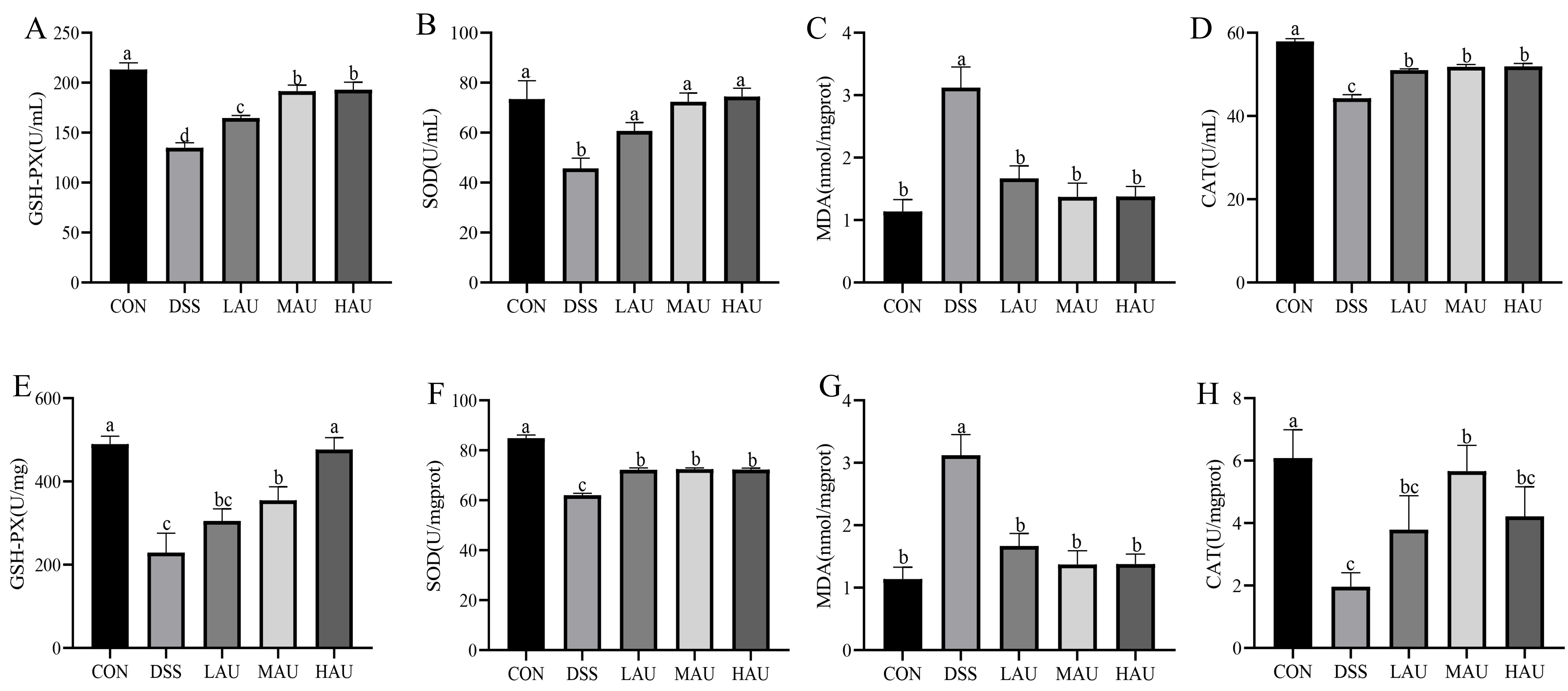 3.4. Effect of AU on Oxidative Stress in Colitis Mice