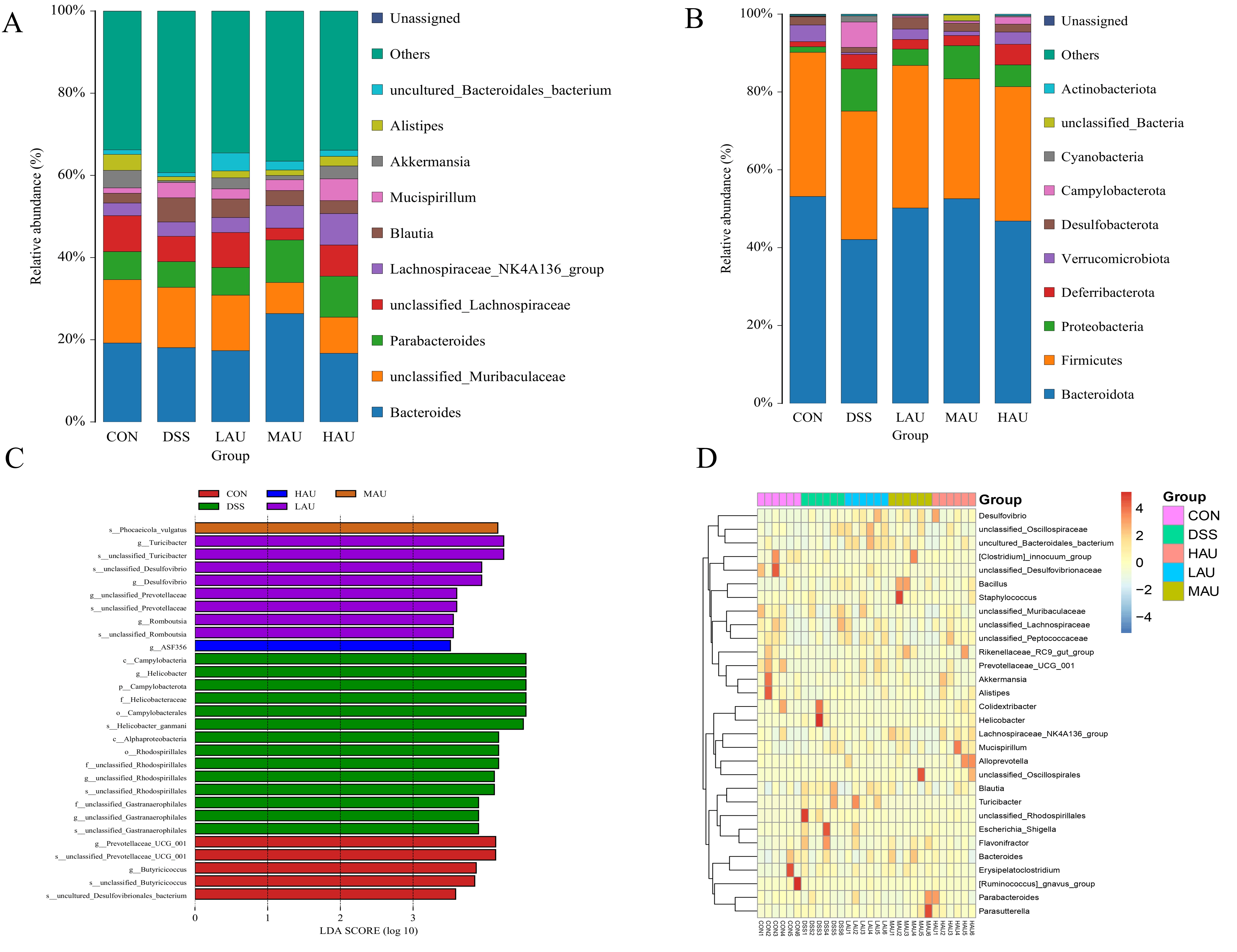 3.7. Effect of AU on the Cecum Flora of Mice with Colitis
