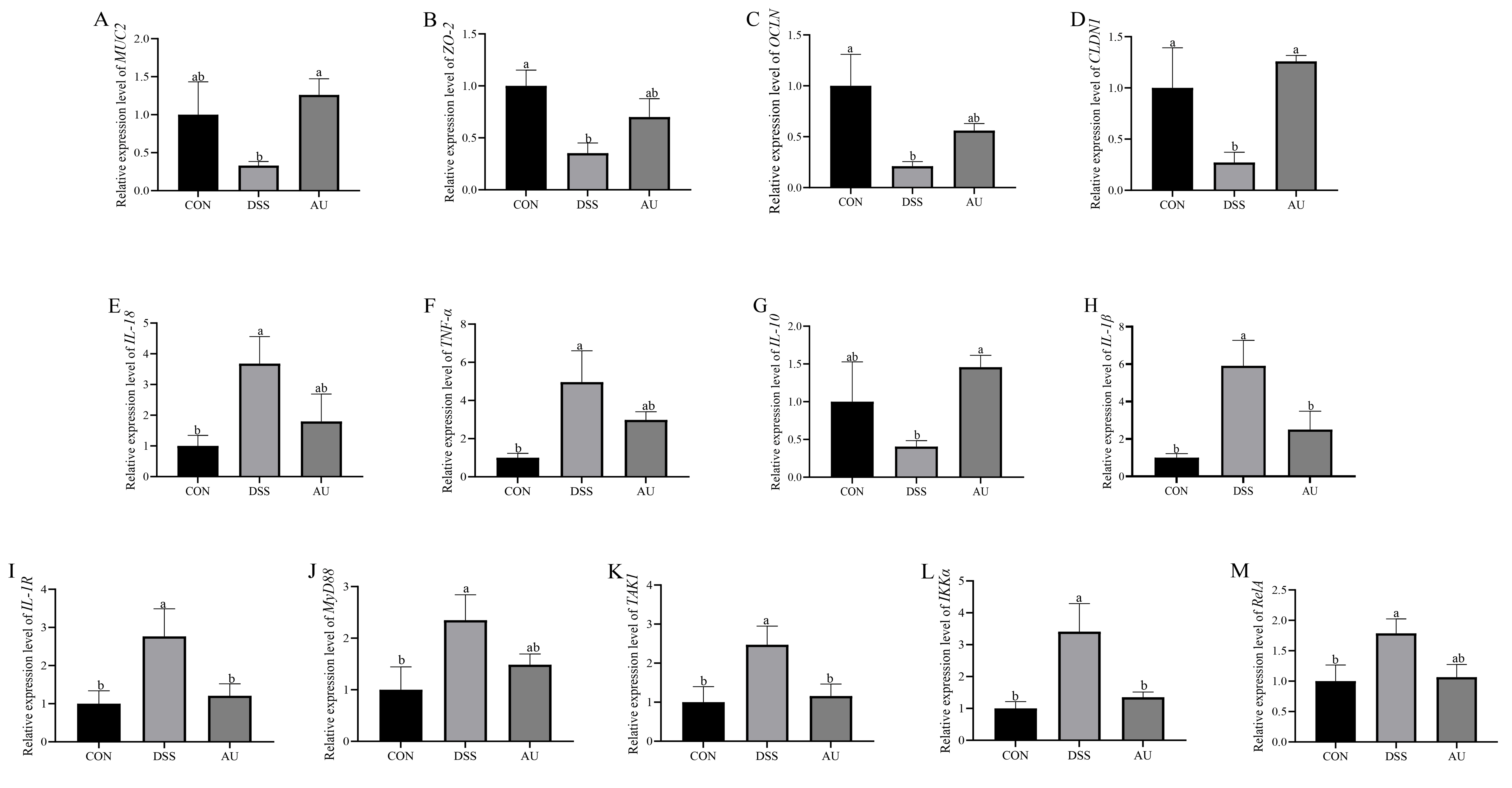 3.5. Effect of AU on Inflammatory Factors in Colitis Mice