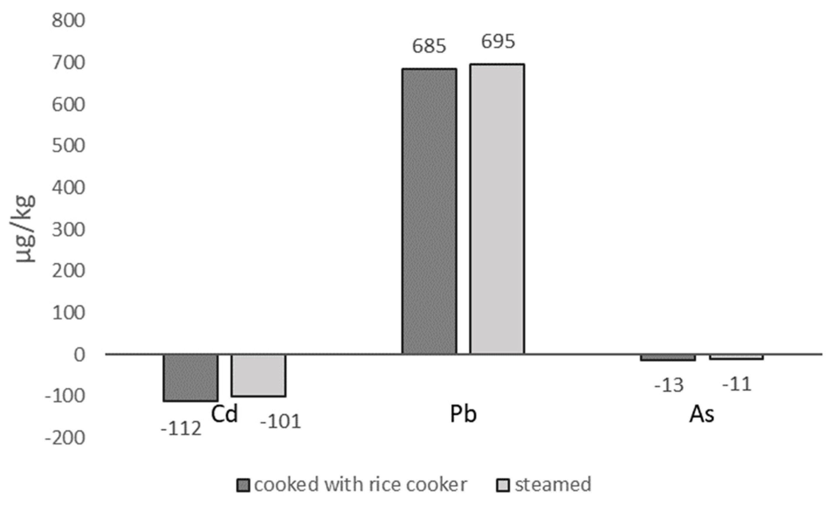 3.2. Changes in Cd, Pb, and As Levels in Cooked Rice
