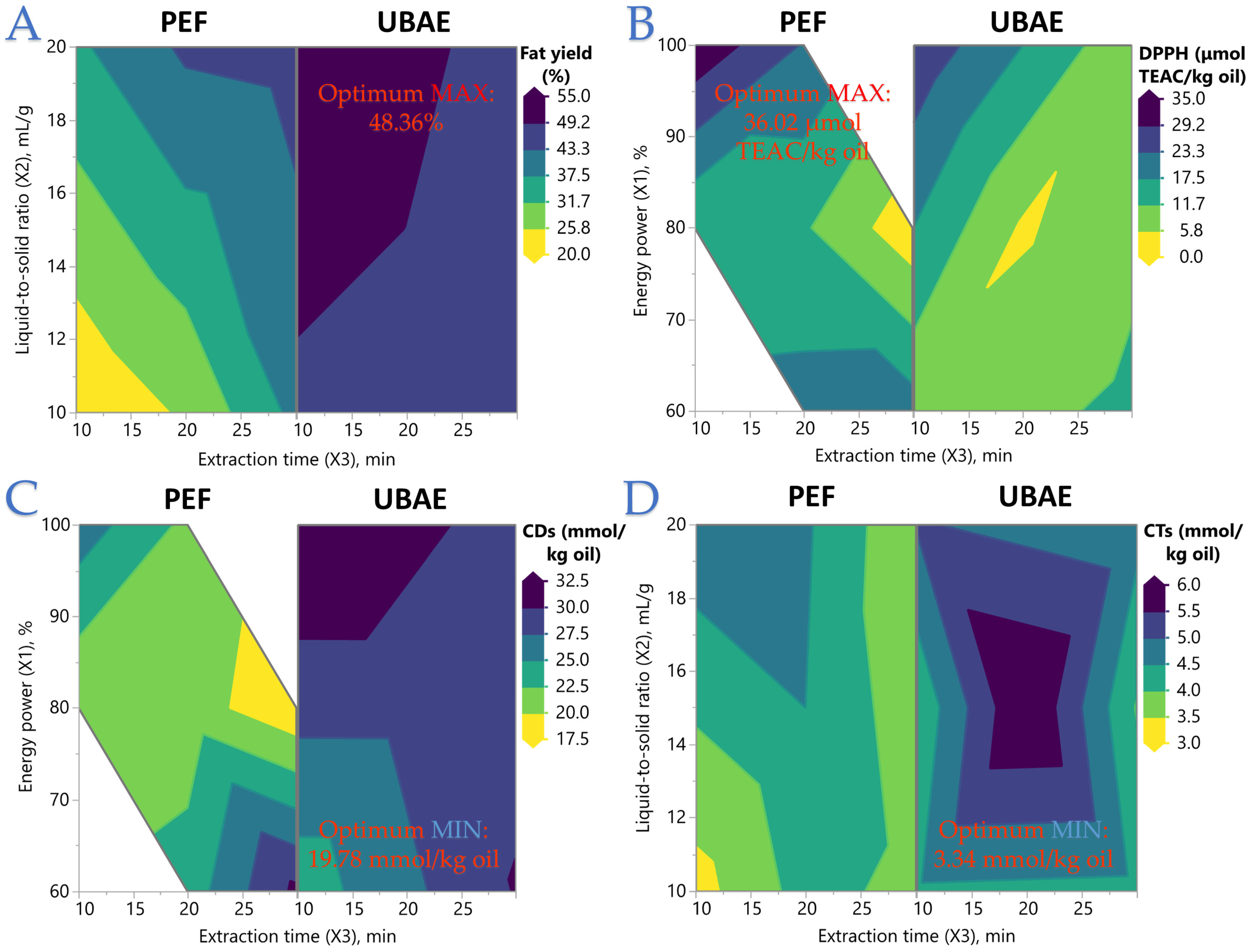 | Responses | PLS-Predicted | PEF | UBAE | Cold-Pressed | Soxhlet | Formula (Section) |