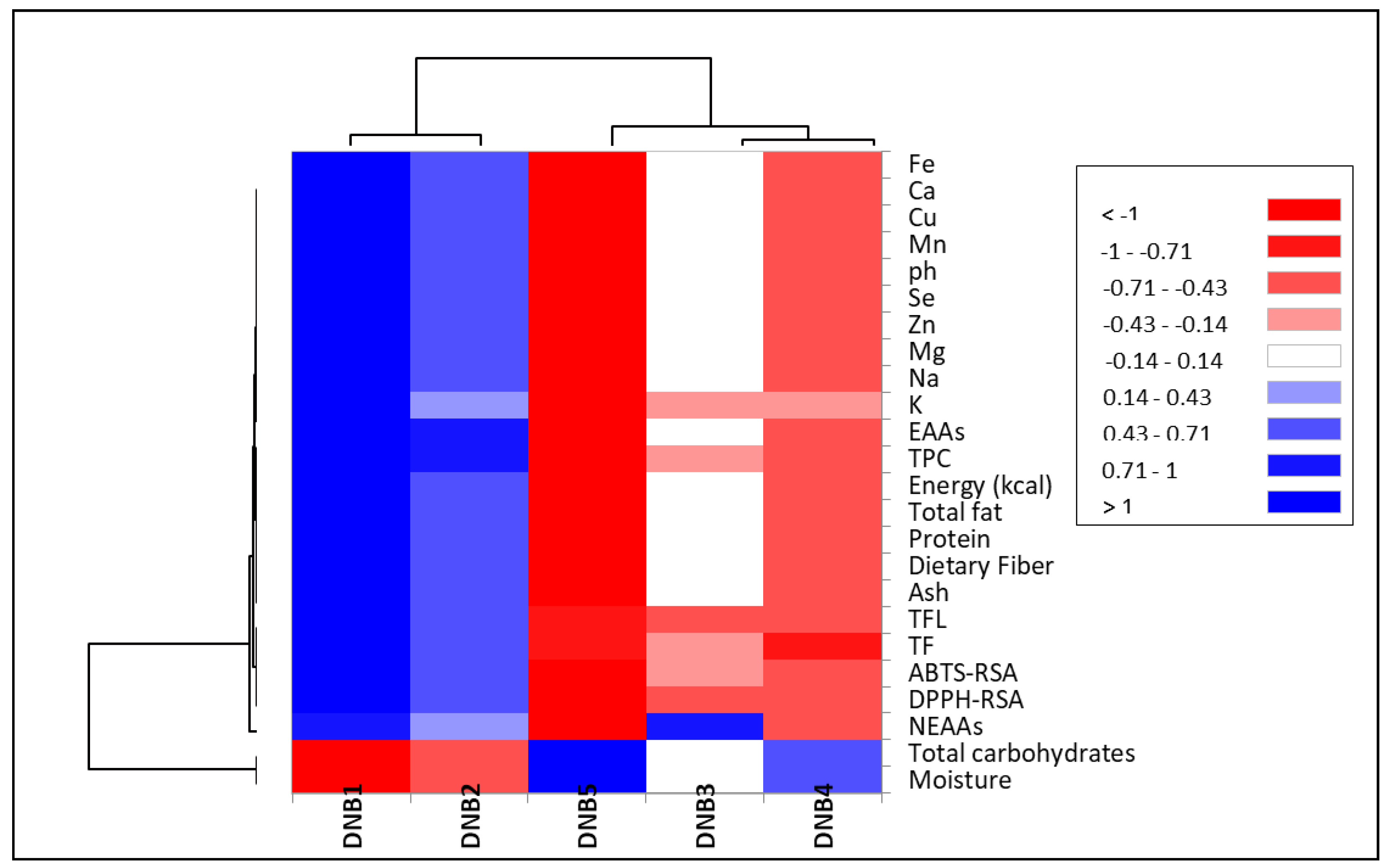 2.3. Nutritional Composition and Mineral Content of Different DNBs