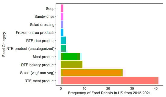 Food categories associated with food recall due to L. monocytogenes contamination in the US from 2012 to 2021 [123].
