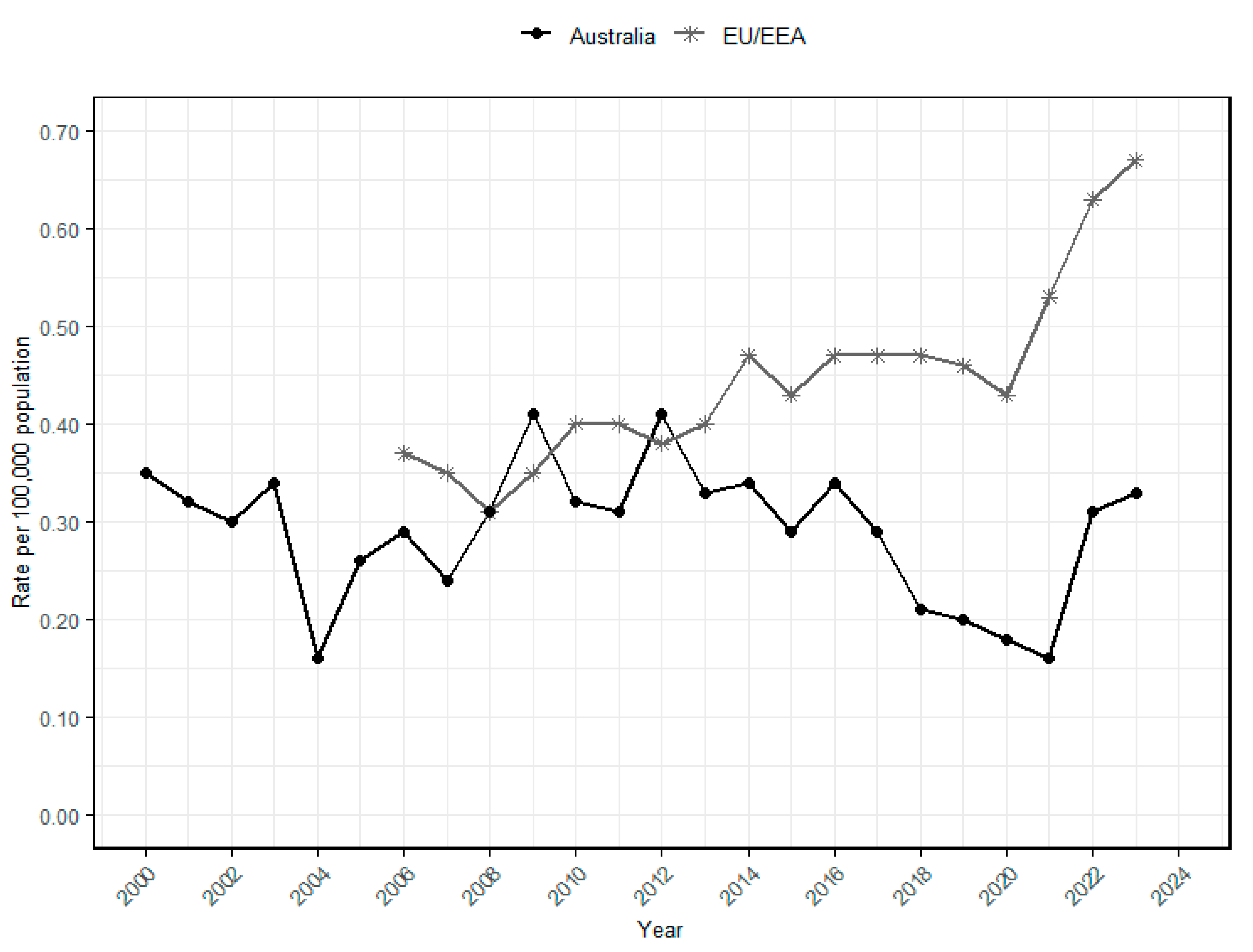 | Australia | 2020–2024 | 446 | 90 (20.2%) | 28 (31.1%) | [19] |