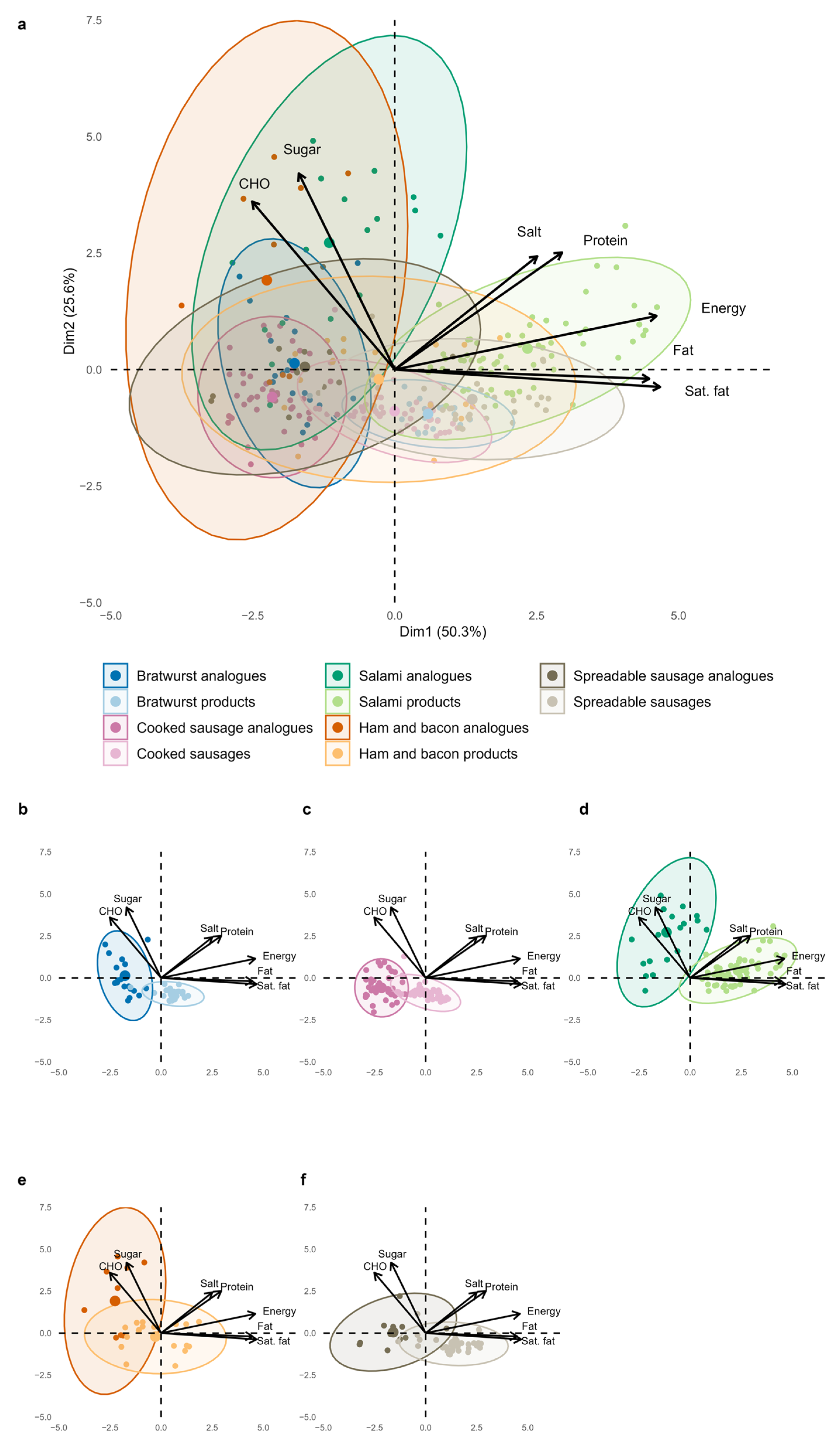 - Total Fat: Fat content was significantly lower (p < 0.001) in the same five PBMA categories that also had reduced energy content. On average, animal-based sausage products contained 90% more fat than their plant-based alternatives.
