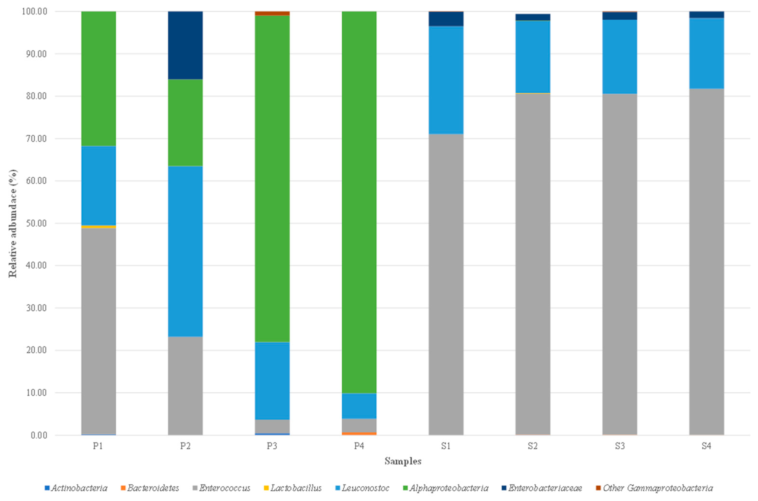 | Lactic acid bacteria | P1 | P2 | P3 | P4 | S1 | S2 | S3 | S4 |