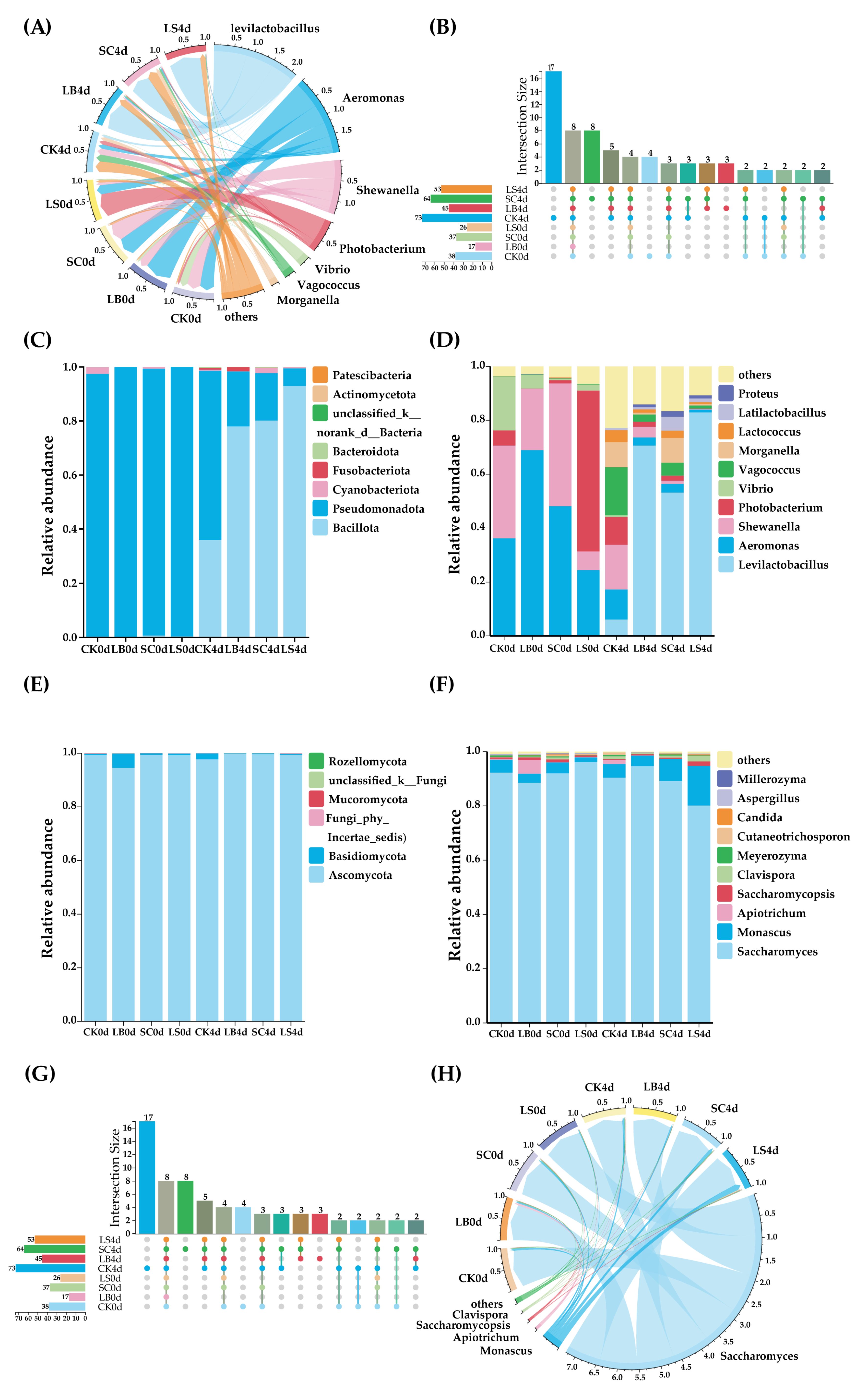 3.6. Microbial Community Composition in Fermented Large Yellow Croaker