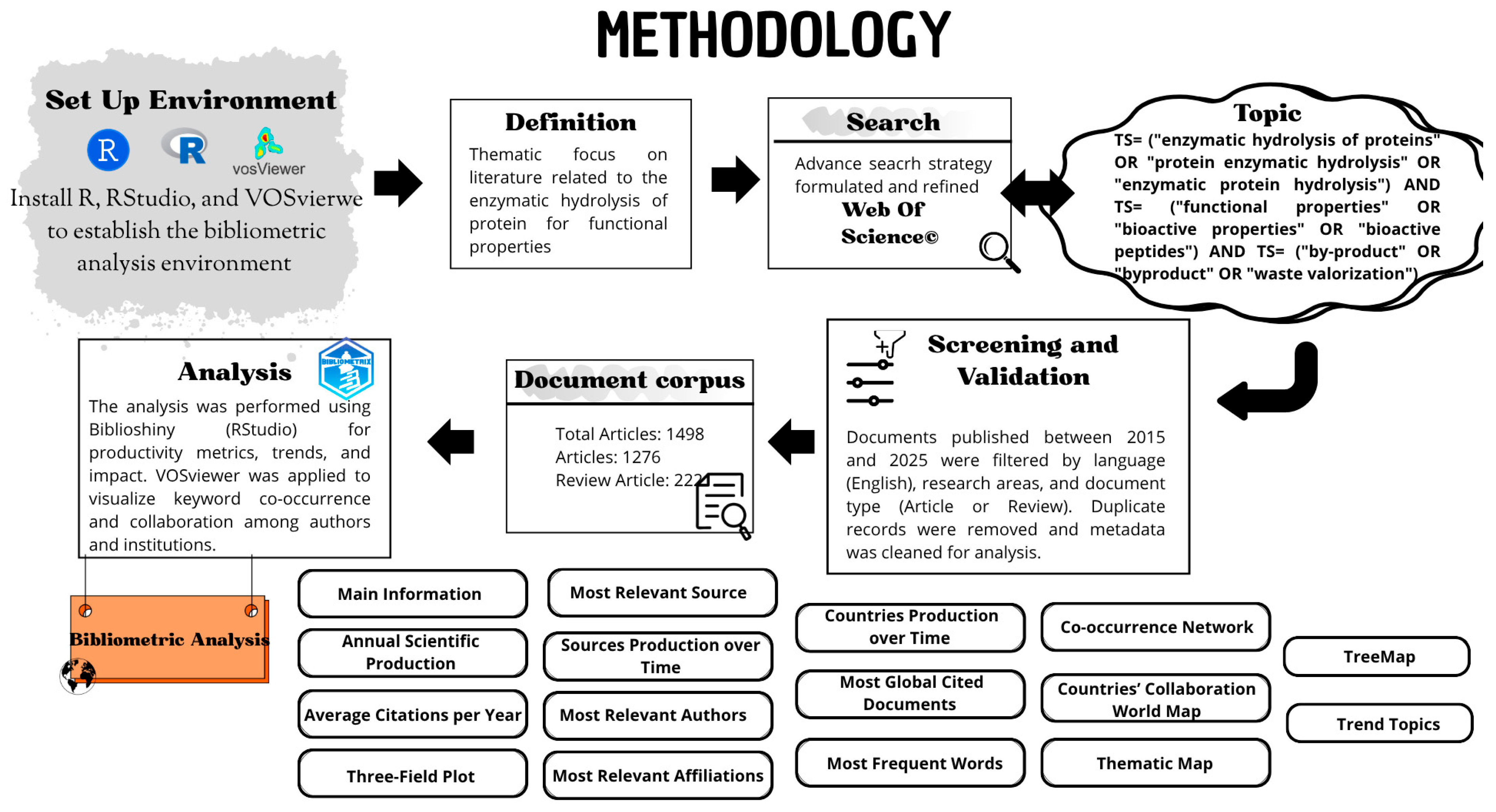 Plaza, S.; Nuñez, S.M.; Masip, Y.; Valencia, P. Bibliometric Analysis of the Scientific Productivity on Functional Properties and Enzymatic Hydrolysis of Proteins from By-Products. Foods 2025, 14, 3693. https://doi.org/10.3390/foods14213693