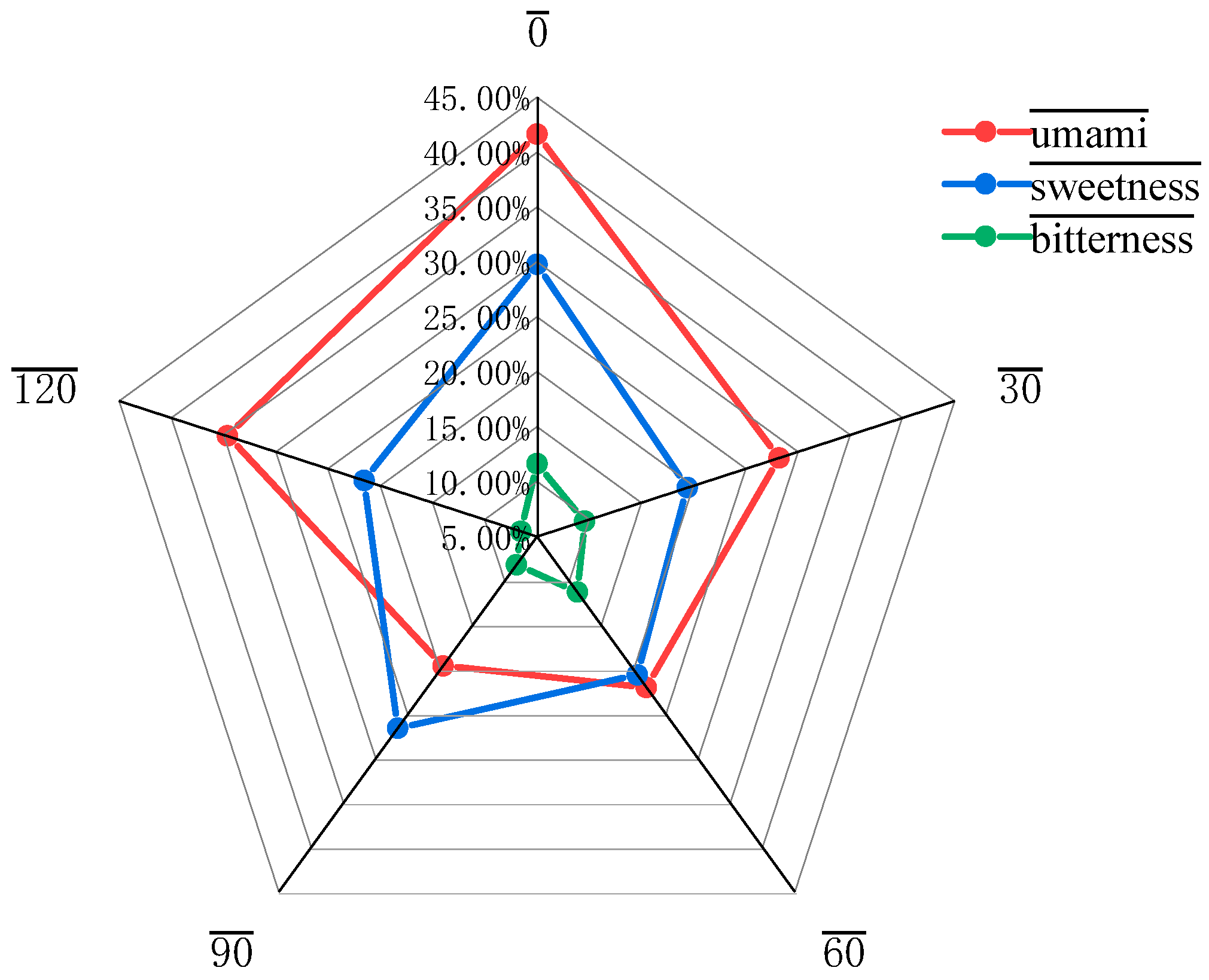 - Liu, X.; Liu, Z.; Zhang, Y.; Fu, Y.; Zhang, Y.; Zhang, X.; Yu, Q.; Zhang, F.; Jie, G. Taste Characteristics Analysis of Compound Umami Products Based on Free Amino Acids and Sensory Evaluation of Umami Taste. Sci. Technol. Food Ind. 2023, 44, 287–293. [Google Scholar] [CrossRef]