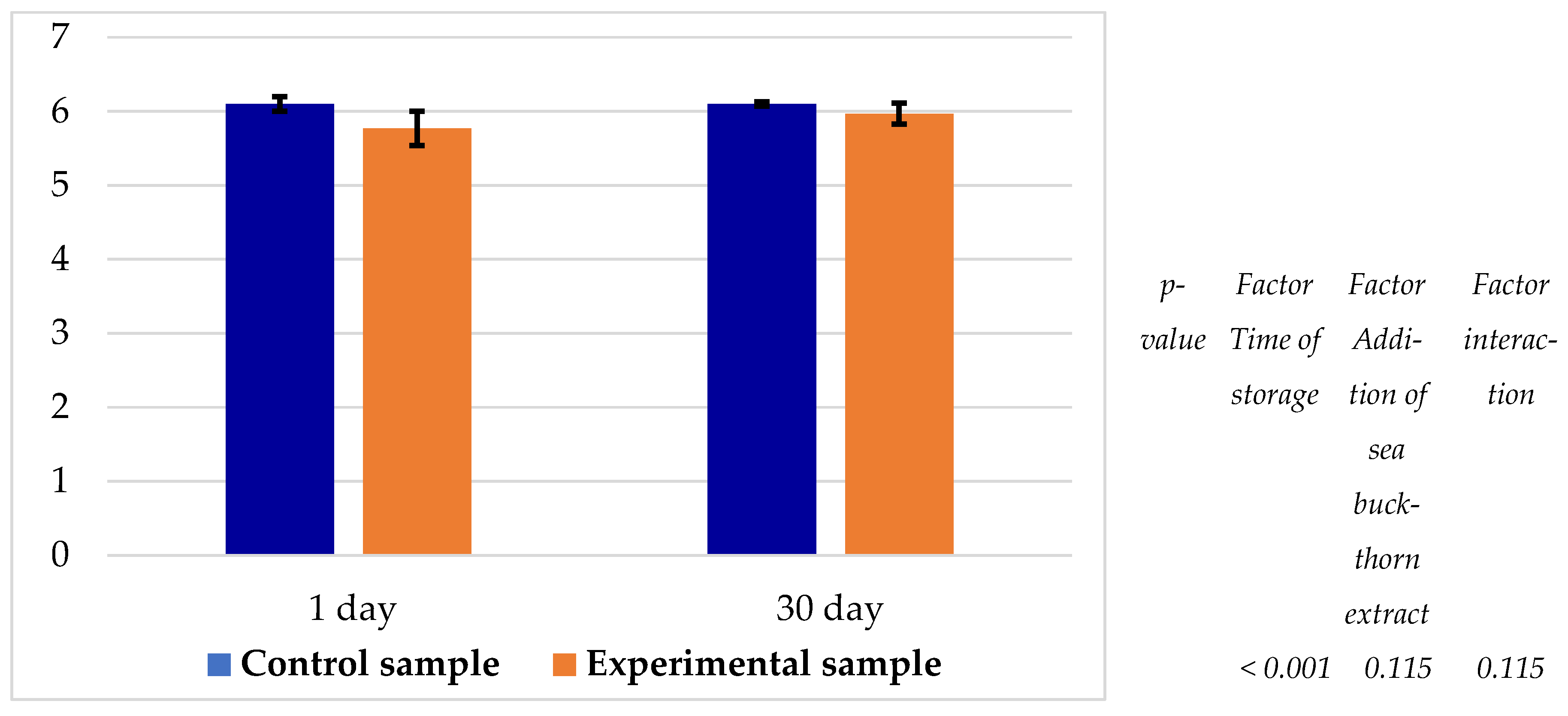 | p-value | Factor Time of storage | Factor Addition of sea buckthorn extract | Factor interaction |