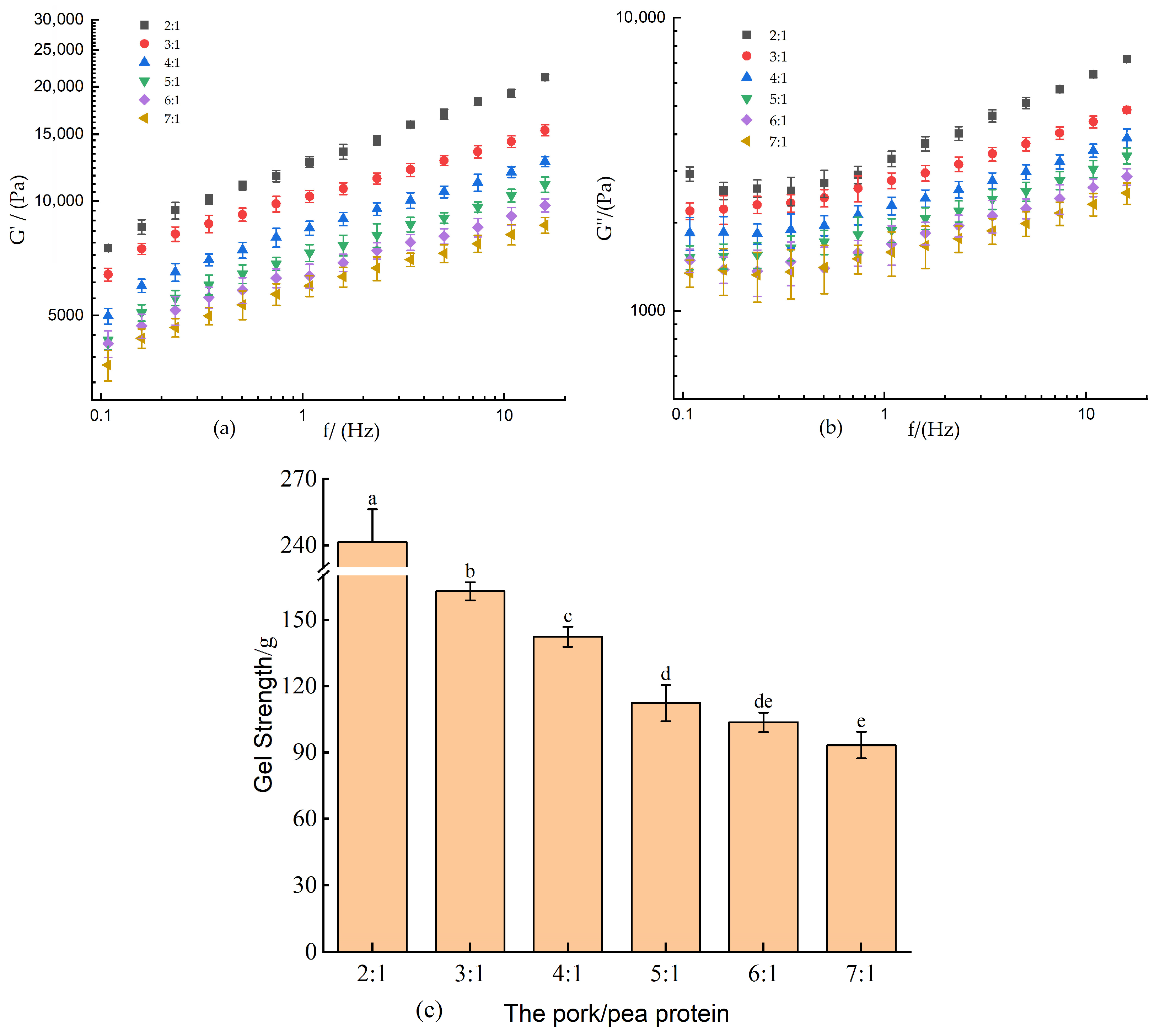 The storage modulus (G′) and loss modulus (G″) serve as critical indicators for quantitatively assessing the elastic and viscous characteristics of meat-derived gels [