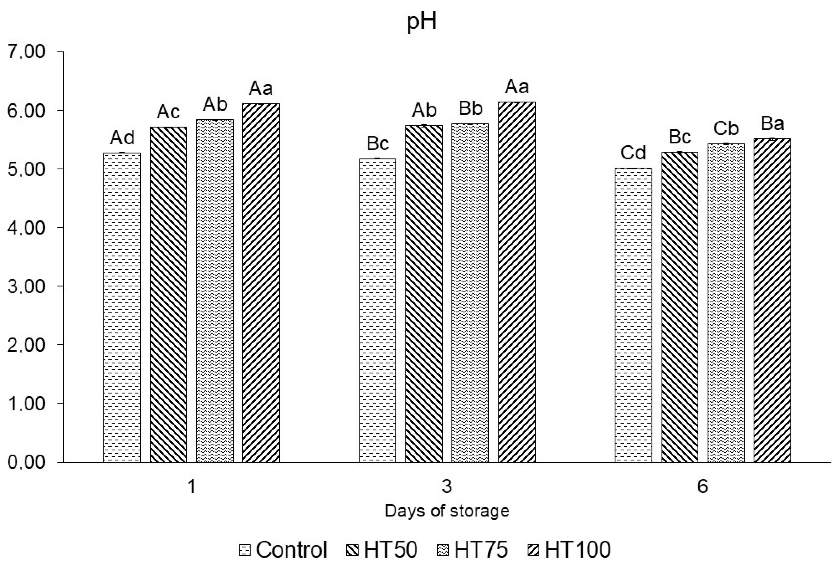 | 6 | 13.3 ± 0.3 Aa | 9.3 ± 0.2 Ab | 7.4 ± 0.3 Ac | 6.3 ± 0.2 Ac | |