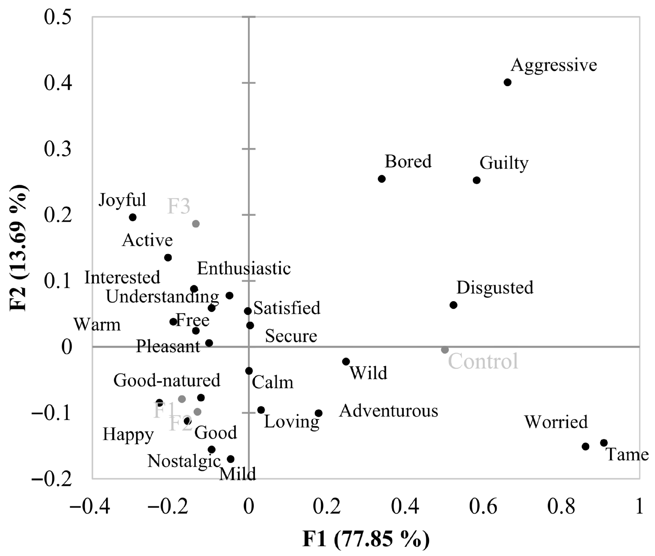 | Emotion | Control | F1 | F2 | F3 | p-Values |