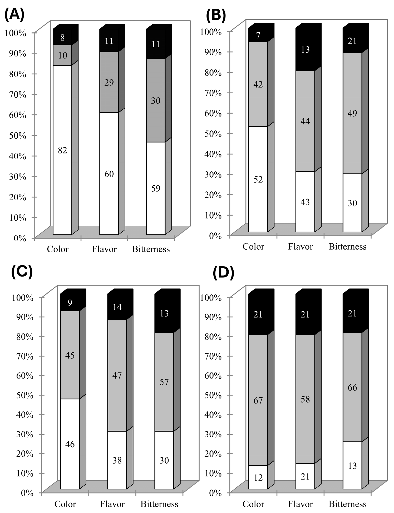 | Bitterness | Too little | 6.2 | 1.1 | <0.0001 * |