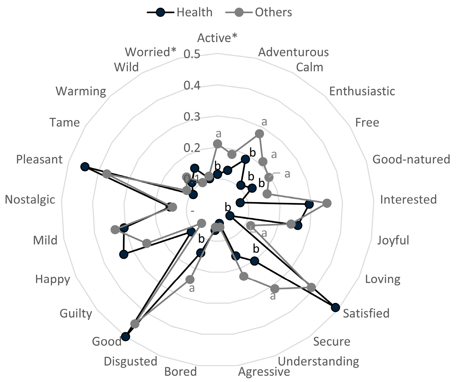 | Joyful | 0.0989 a | 0.2637 a | 0.2637 a | 0.3736 a | 0.0000 |