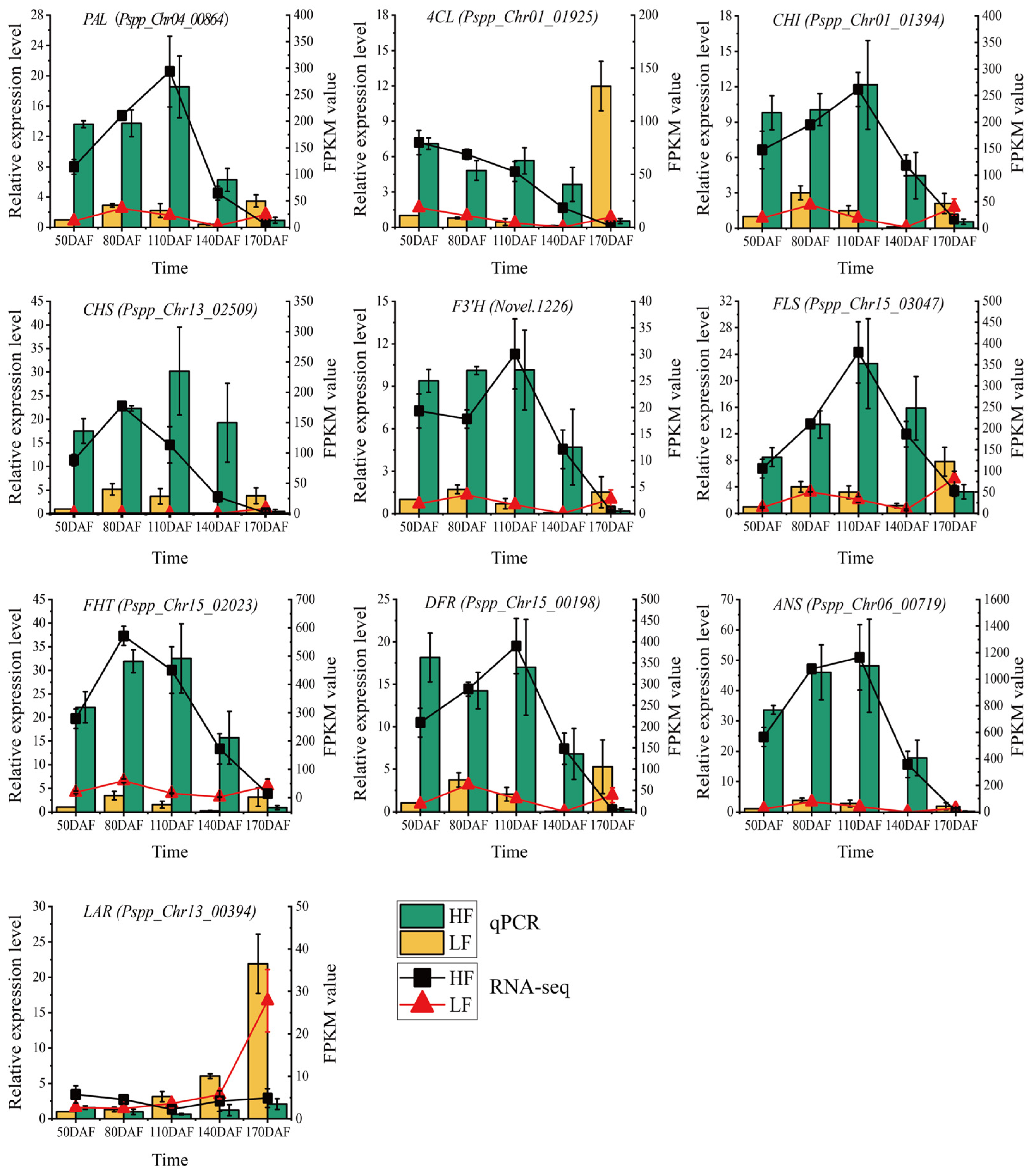 - Ni, J.; Zhao, Y.; Tao, R.; Yin, L.; Gao, L.; Strid, Å.; Qian, M.; Li, J.; Li, Y.; Shen, J. Ethylene mediates the branching of the jasmonate-induced flavonoid biosynthesis pathway by suppressing anthocyanin biosynthesis in red Chinese pear fruits. Plant Biotechnol. J. 2020, 18, 1223–1240. [Google Scholar] [CrossRef]