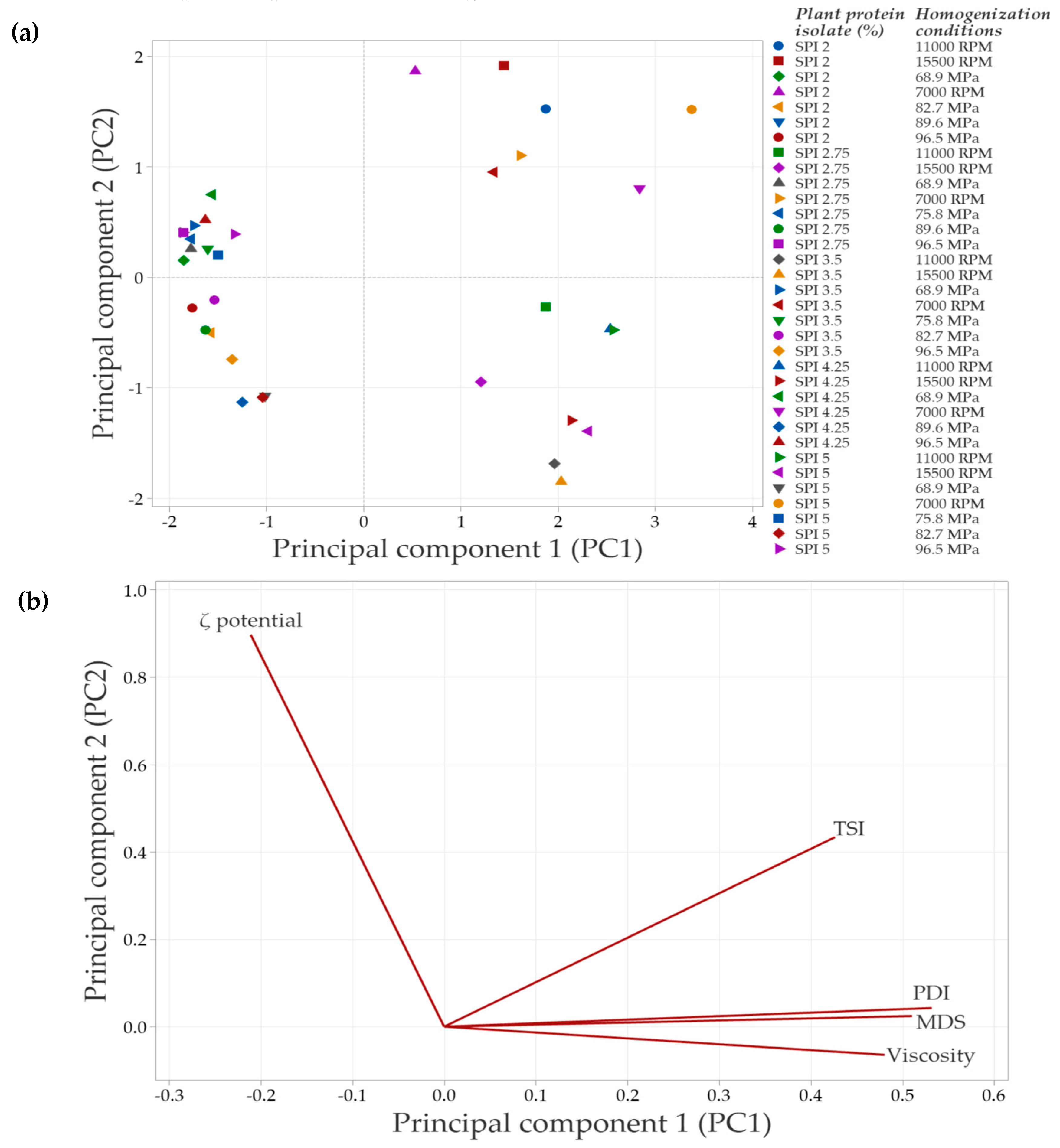 Combined Effect of Plant Protein Isolate Content and the Homogenization Processes on the Physical Stability of Oily Extract Emulsions