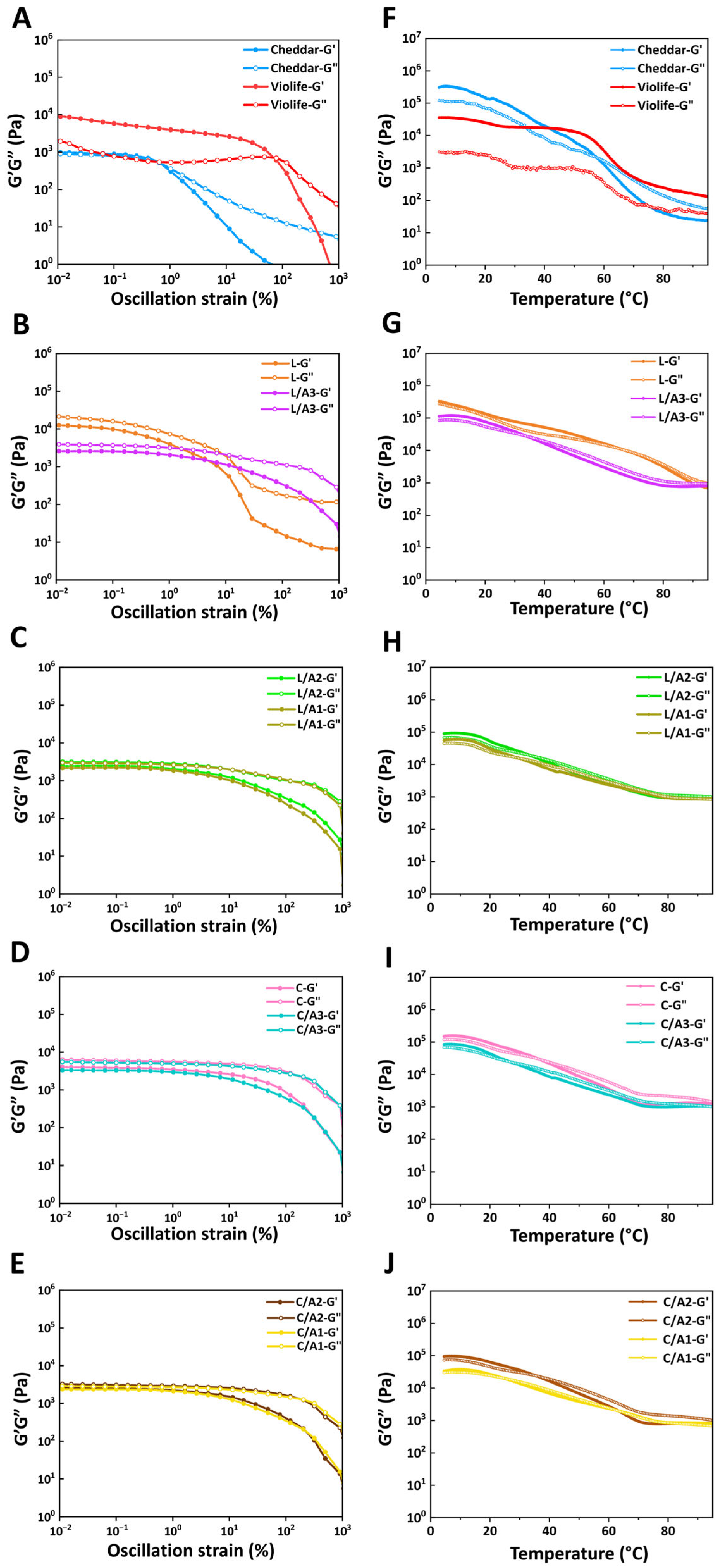 3.2.4. Effect of Organic Acids on Oscillatory Temperature Sweeps