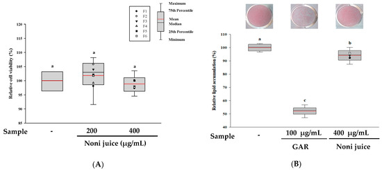 3.4. Effects of Noni Juice on Anti-Obesity and Anti-Obesogenic Activities