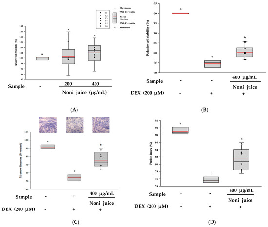 3.5. Anti-Muscle Atrophy Effects of Noni Juice in C2C12 Myotubes