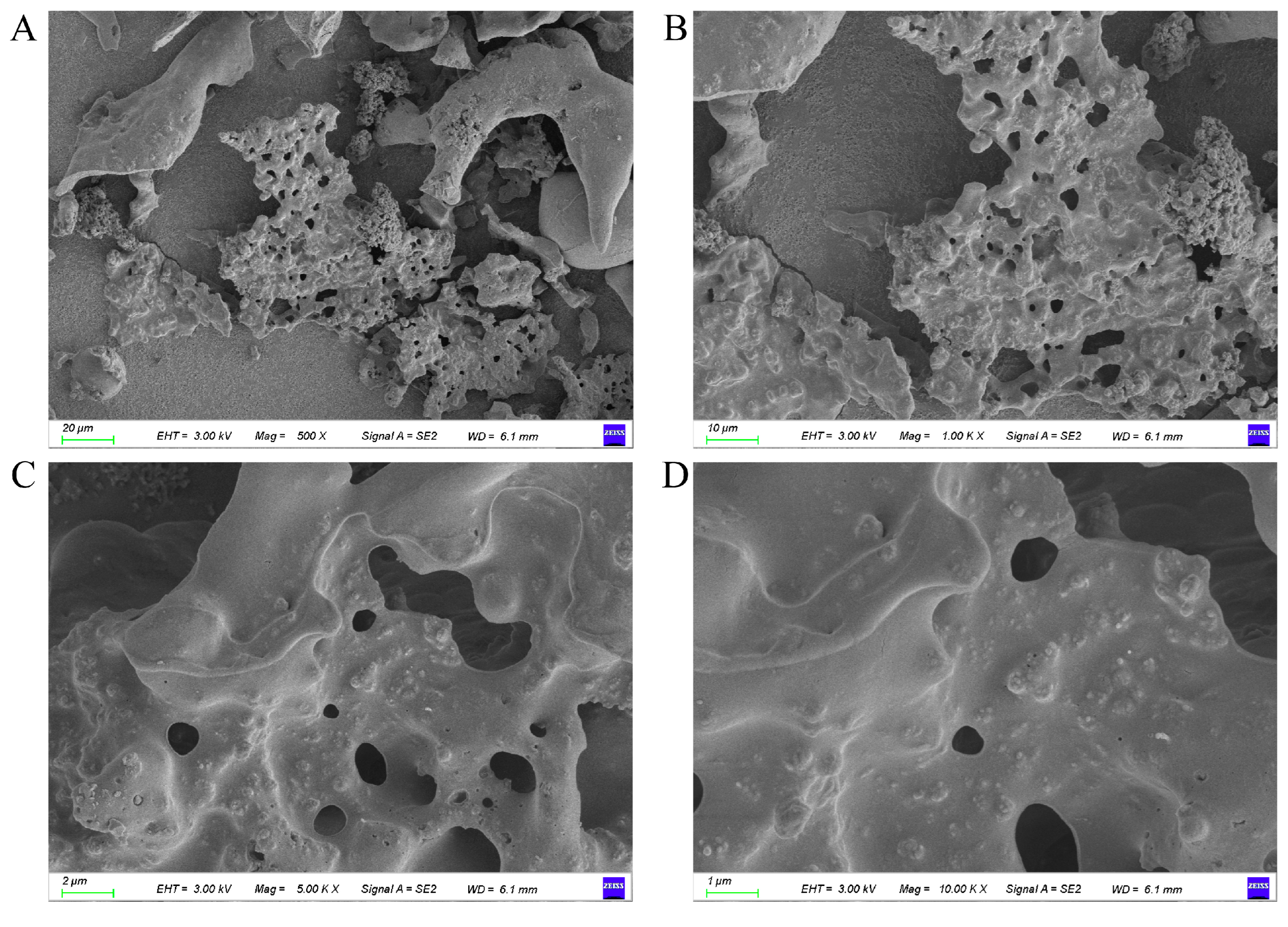 Samples were mounted on metal stubs, sputter-coated with a thin gold film, and imaged using a scanning electron microscope (GeminiSEM 360, Zeiss, Obercohen, Germany).