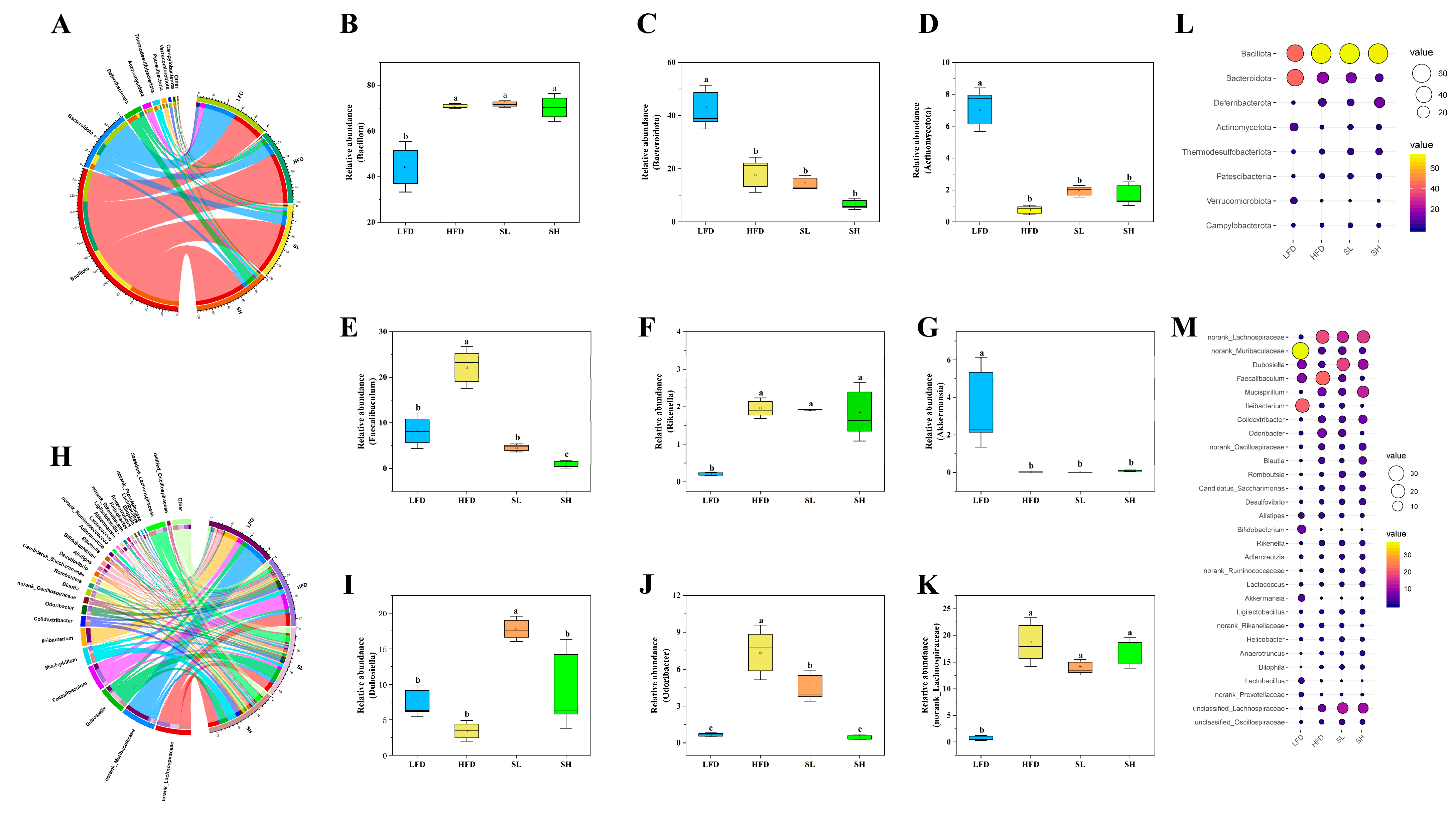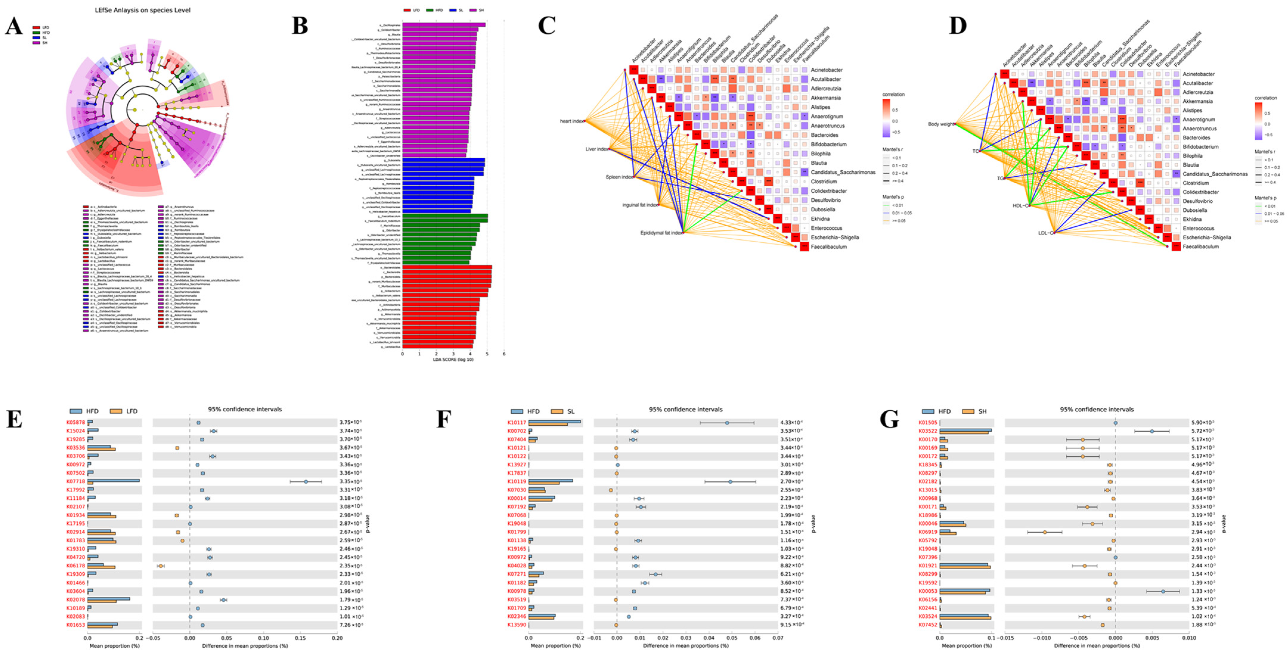 35]. In our dataset, LEfSe identified high-fat diet (HFD)-enriched discriminative taxa, including