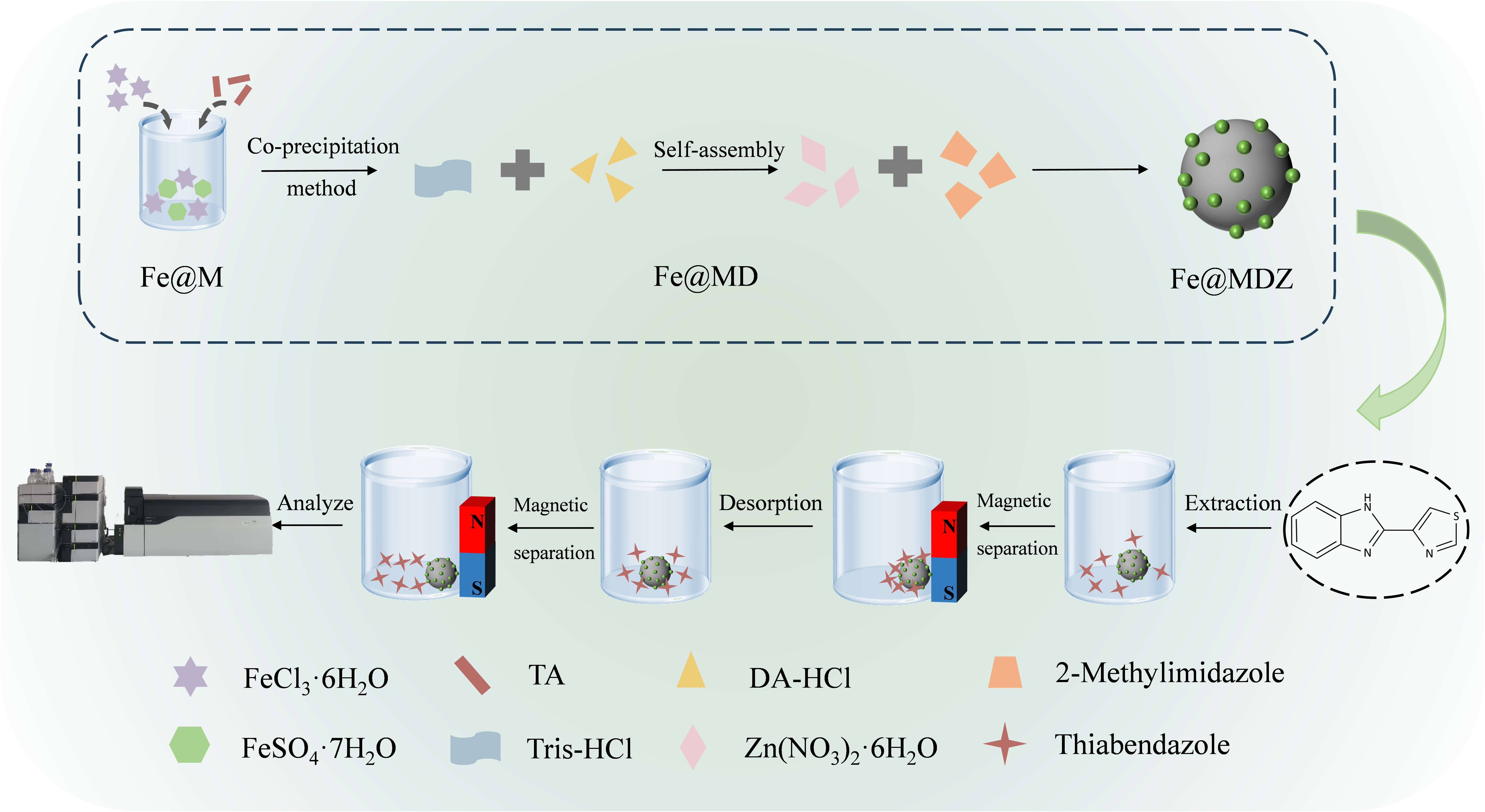 Coral-like Magnetic Metal–Organic Framework for Selective Adsorption and Detection of Thiabendazole in Tomato and Chinese Cabbage Samples