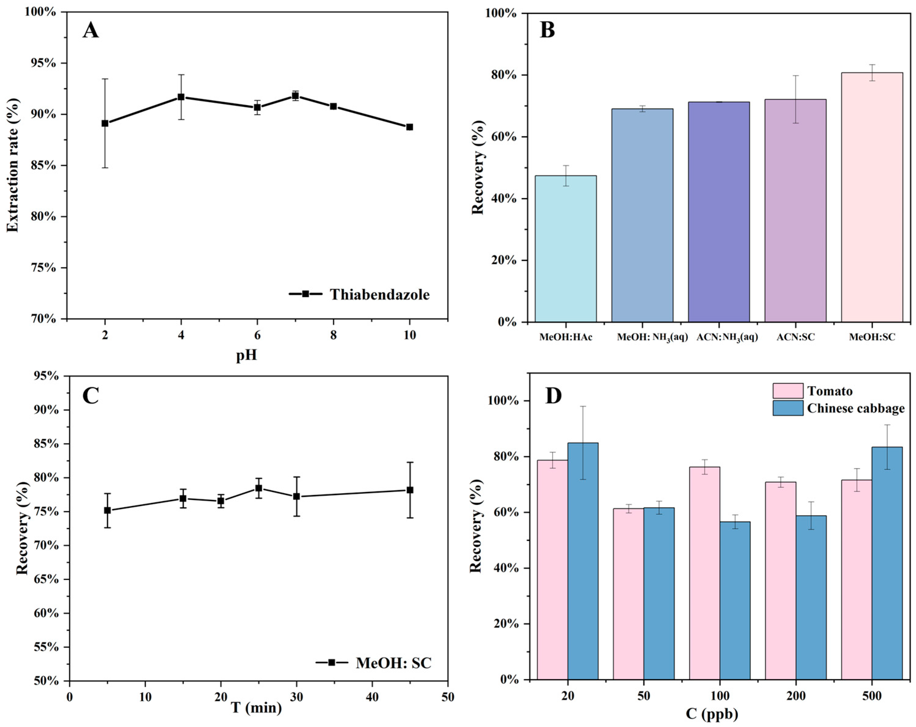 - Yu, Q.-W.; Sun, H.; Wang, K.; He, H.-B.; Feng, Y.-Q. Monitoring of Carbendazim and Thiabendazole in Fruits and Vegetables by SiO2@NiO-Based Solid-Phase Extraction Coupled to High-Performance Liquid Chromatography-Fluorescence Detector. Food Anal. Methods 2017, 10, 2892–2901. [Google Scholar] [CrossRef]