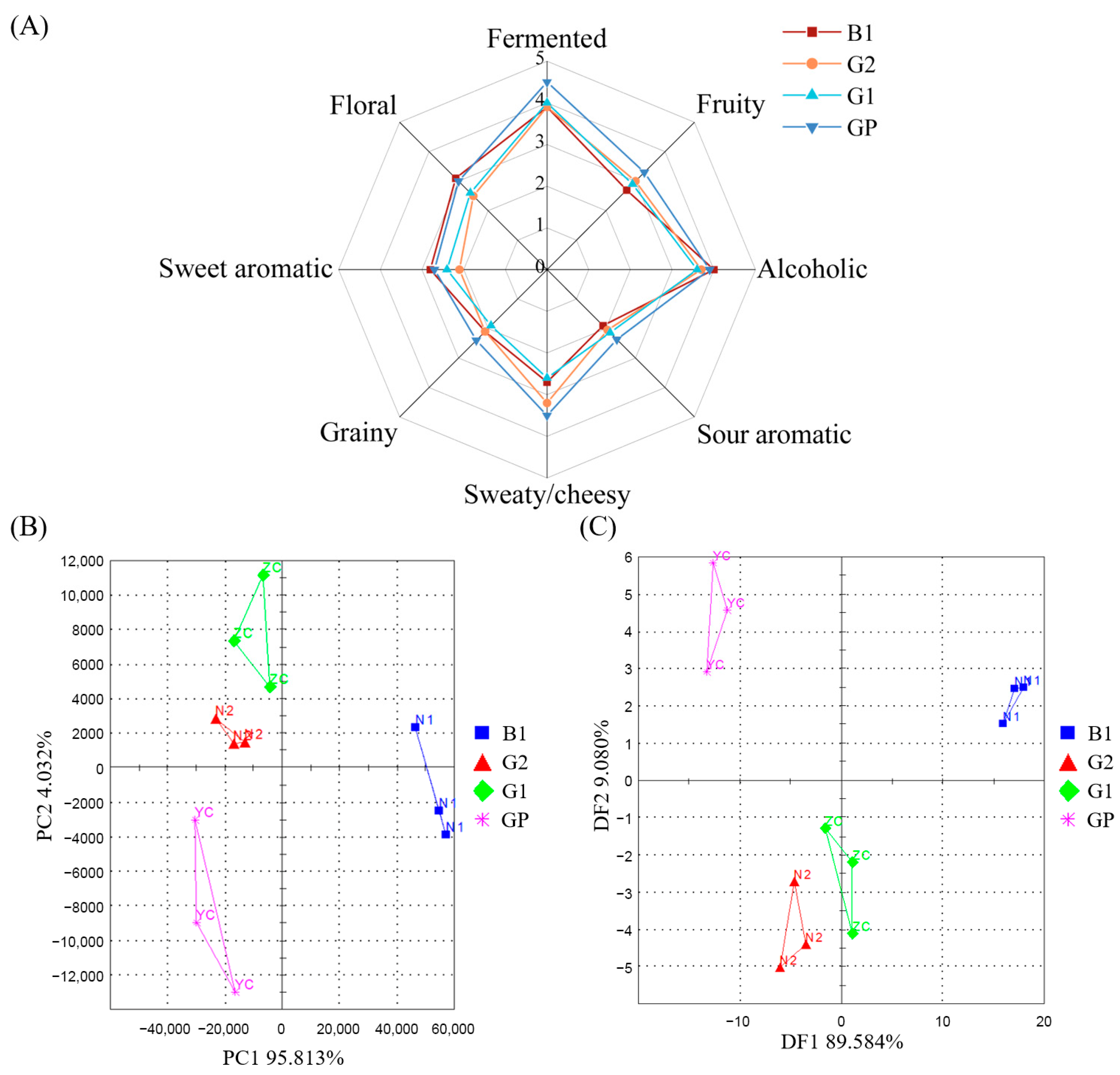 3.1.2. Electronic Nose Analysis of NXB in Different Grade