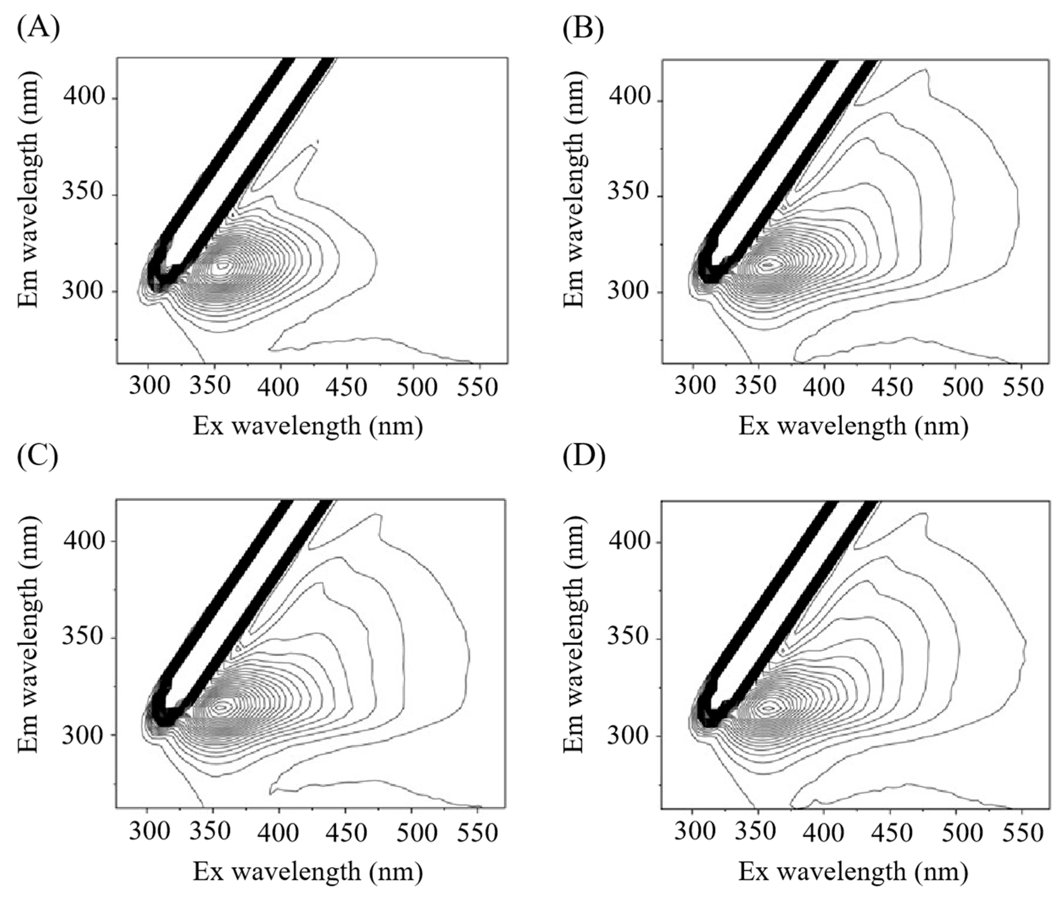 2.5. Three-Dimensional Fluorescence Spectroscopy Analysis