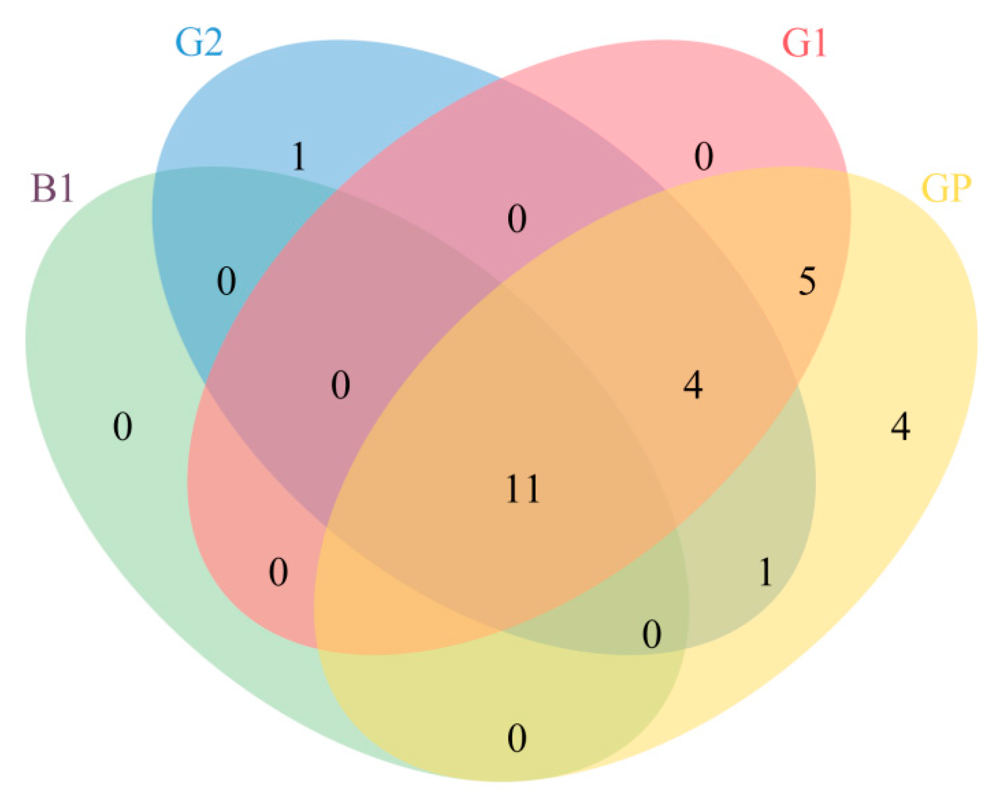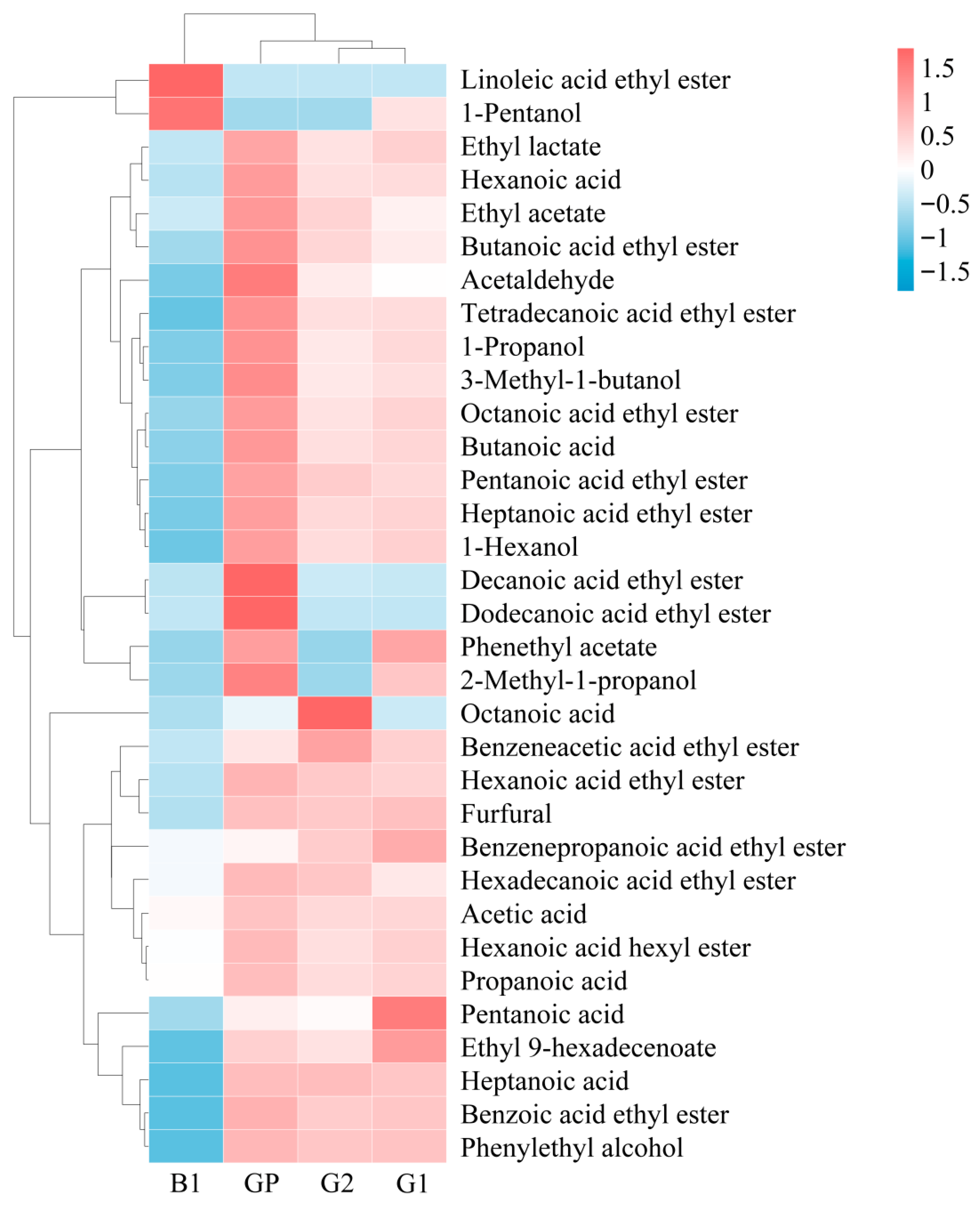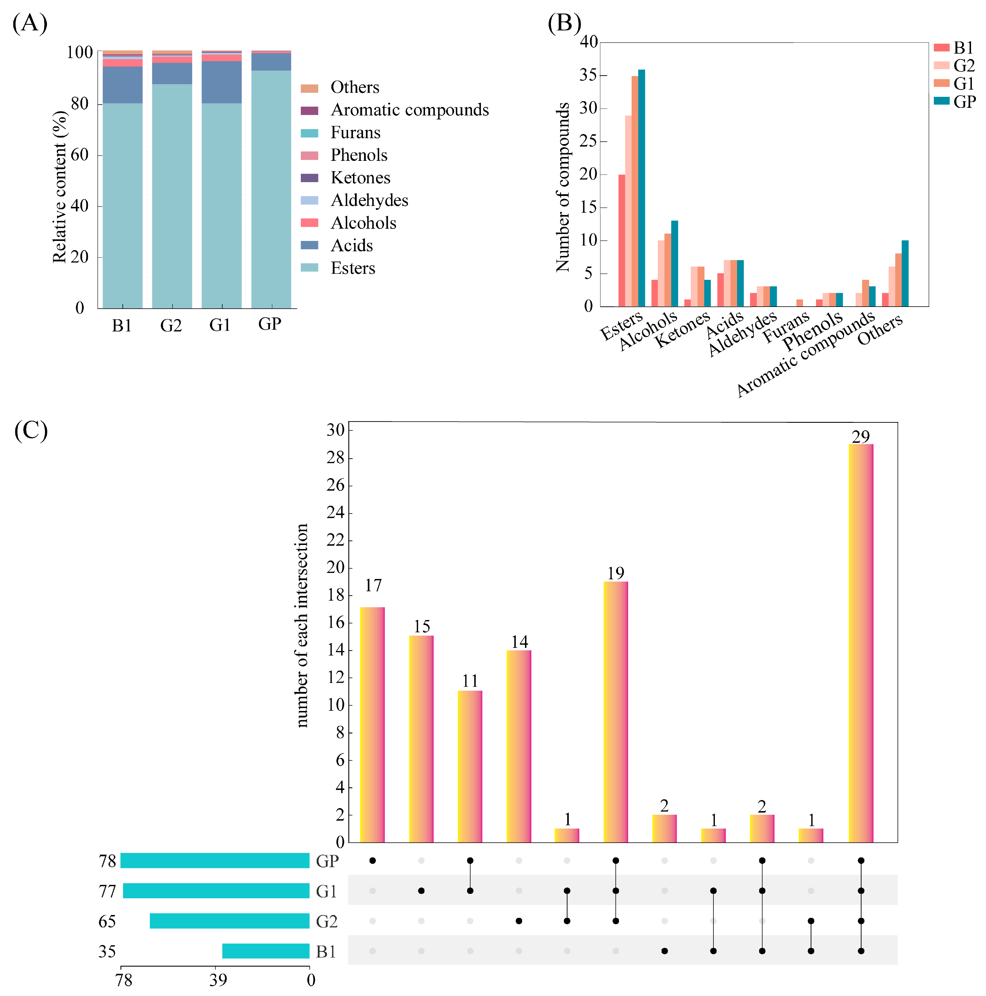 3.2. The Types of Volatile Compounds of NXB in Different Grades