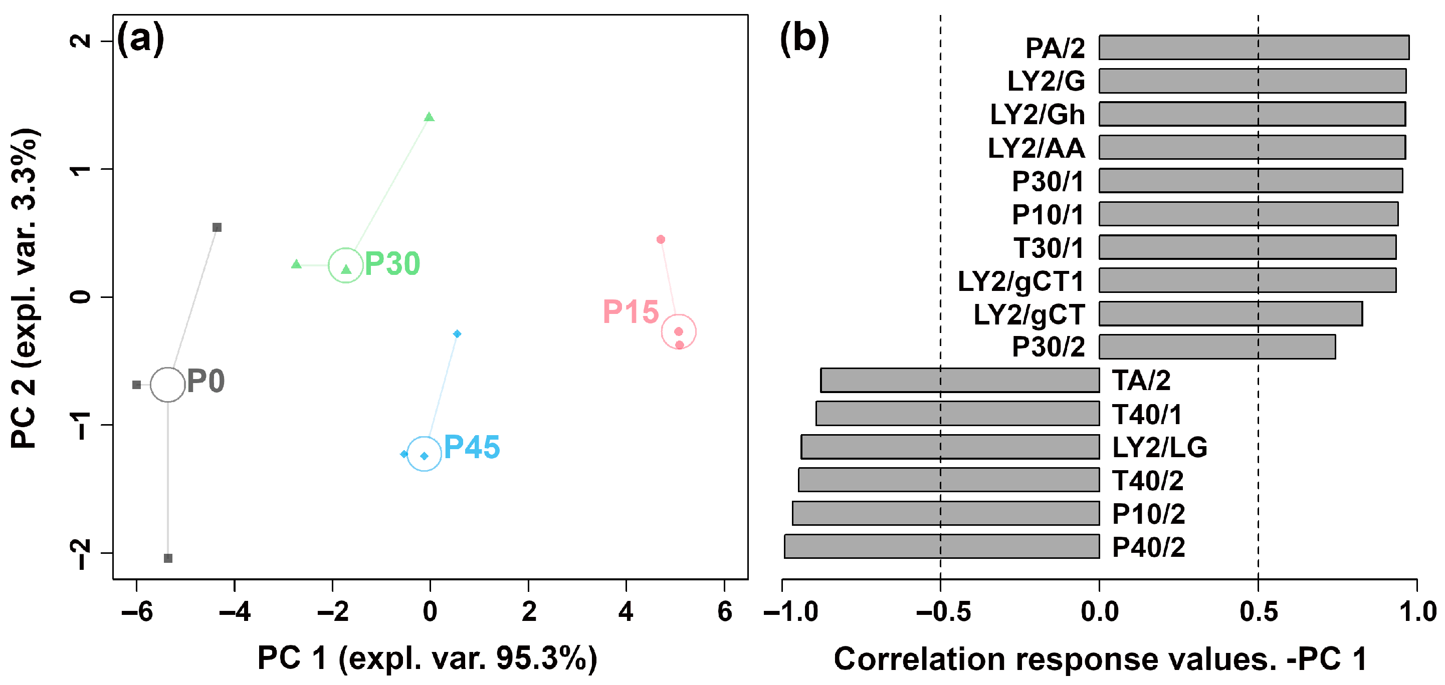 - Chen, C.; Li, J.; Cheng, G.; Liu, Y.; Yi, Y.; Chen, D.; Wang, X.; Cao, J. Flavor Changes and Microbial Evolution in Fermentation Liquid of Sour Bamboo Shoots. J. Food Compos. Anal. 2023, 120, 105273. [Google Scholar] [CrossRef]