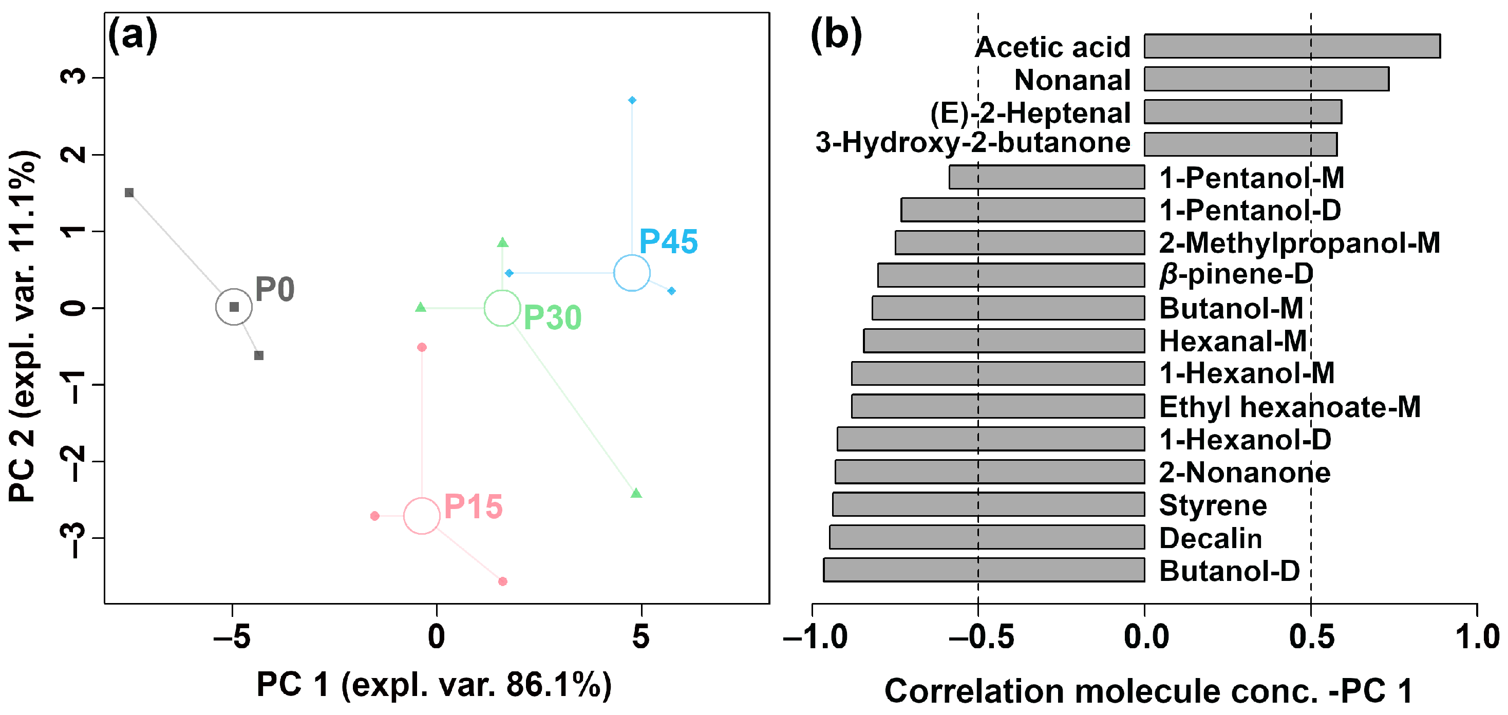 - Zhao, S.; Yue, J.; Wang, Y.; Shao, J.; Li, Z.; Li, M. The Regulation of Volatile Flavor Compounds in Fermented Meat Products Mediated by Microorganisms: A Review. Food Biosci. 2024, 62, 105180. [Google Scholar] [CrossRef]