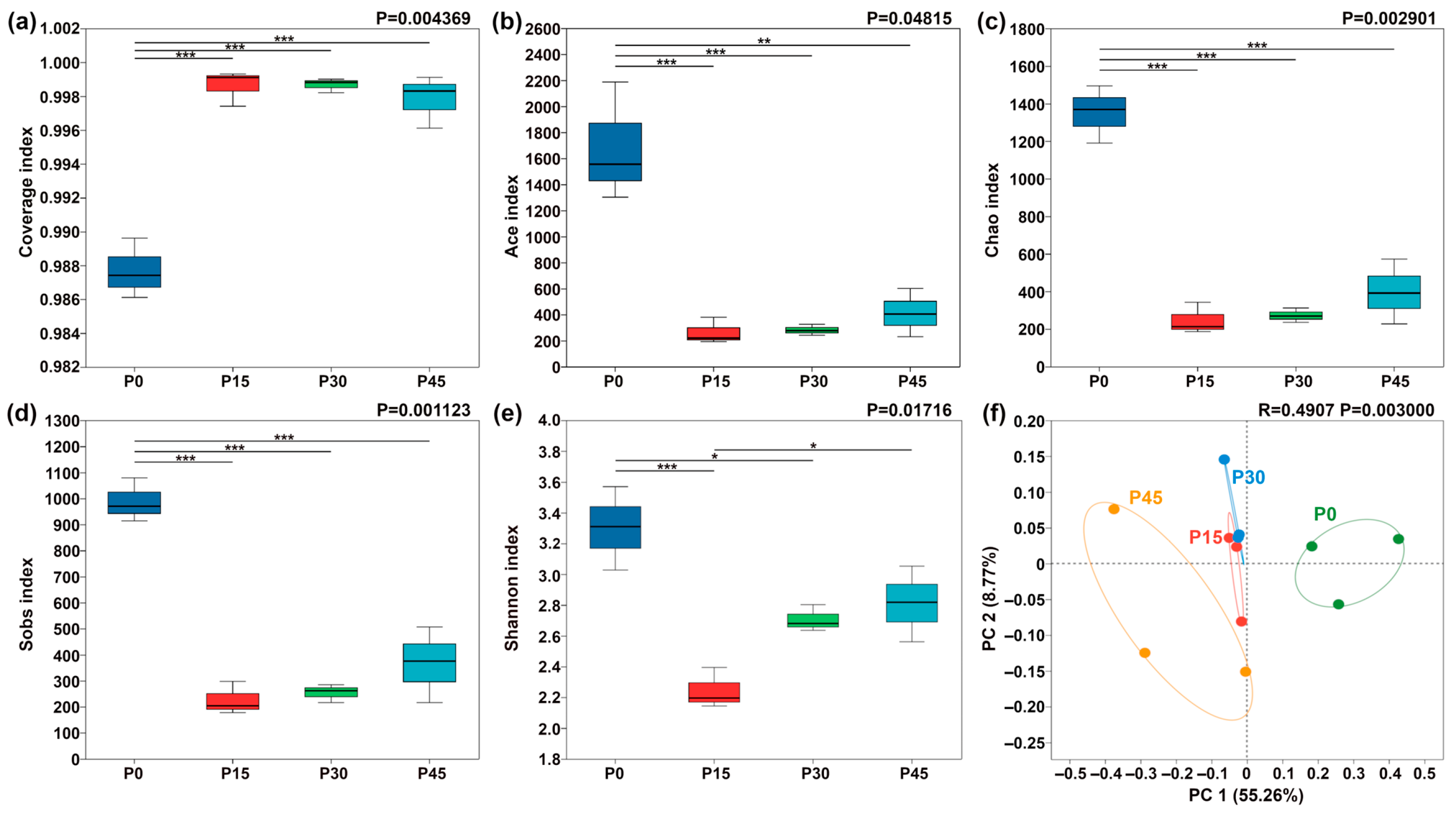 3.3.2. Bacterial Taxonomic Composition Analysis