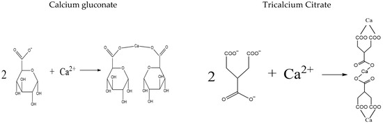 - Liu, J.; Li, Y.; Tang, N. Enhanced Solubility and Calcium Absorption of Calcium Gluconate and Calcium Citrate in the Presence of Aspartic Acid and Glutamic Acid. J. Mol. Liq. 2024, 410, 125573. [Google Scholar] [CrossRef]