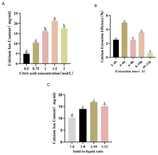 2.3. Optimization of Calcium Extraction by Adapting Single-Factor Experiments