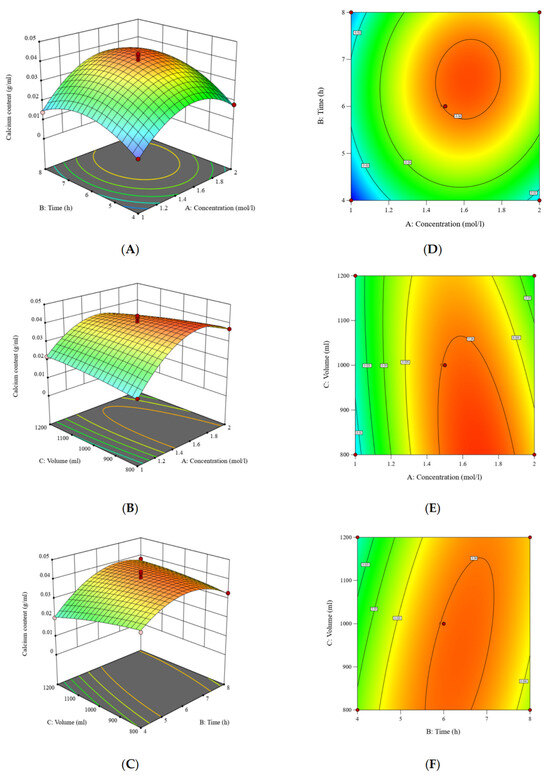 3.3. Optimization of Calcium Extraction Using Response Surface Methodology